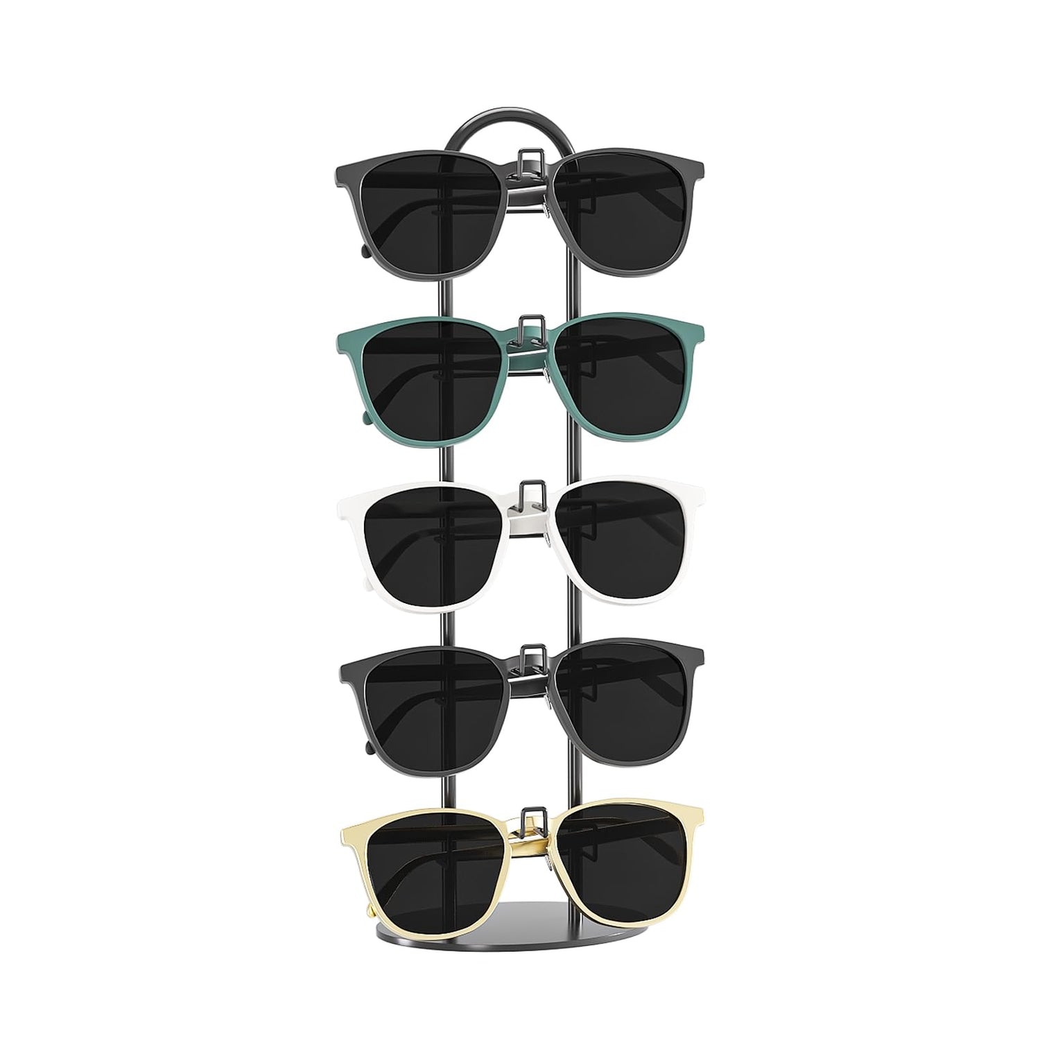 LongMen Metal Sunglass Organizer,Glasses Holder,Eyeglass Holder,Sunglass Storage Eyeglasses Rack Metal Frame for 5 Pairs (1, Black)