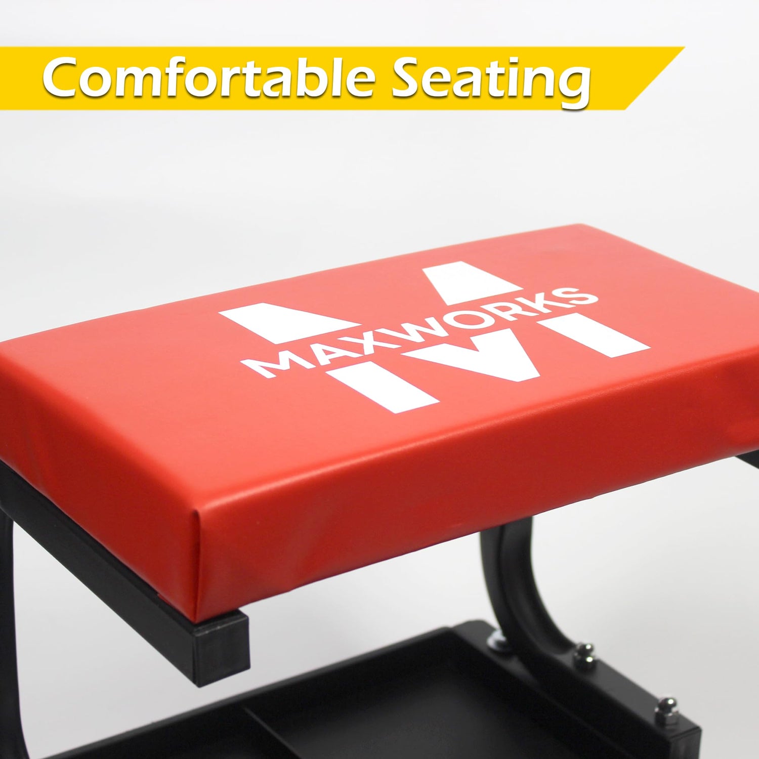 MaxWorks 50875 Mechanics Roller Seat, 250 LBS Capacity Padded Rolling Workshop Stool with Tool Tray Storage for Garage, Shop, Auto Repair