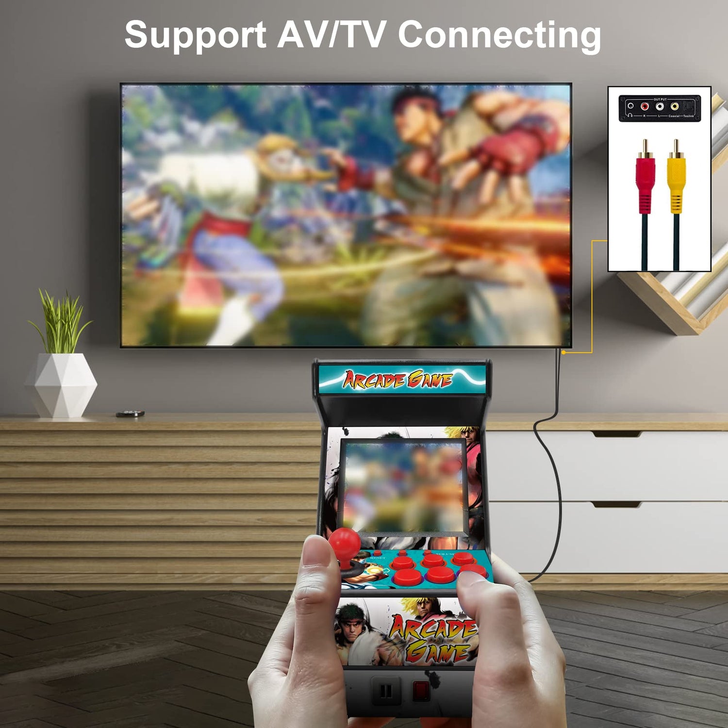 • 📺Play Games On TV: Mini arcade games console supports TV connection with AV cable. You can enjoy games on large screen, and share the excite with family and friends.