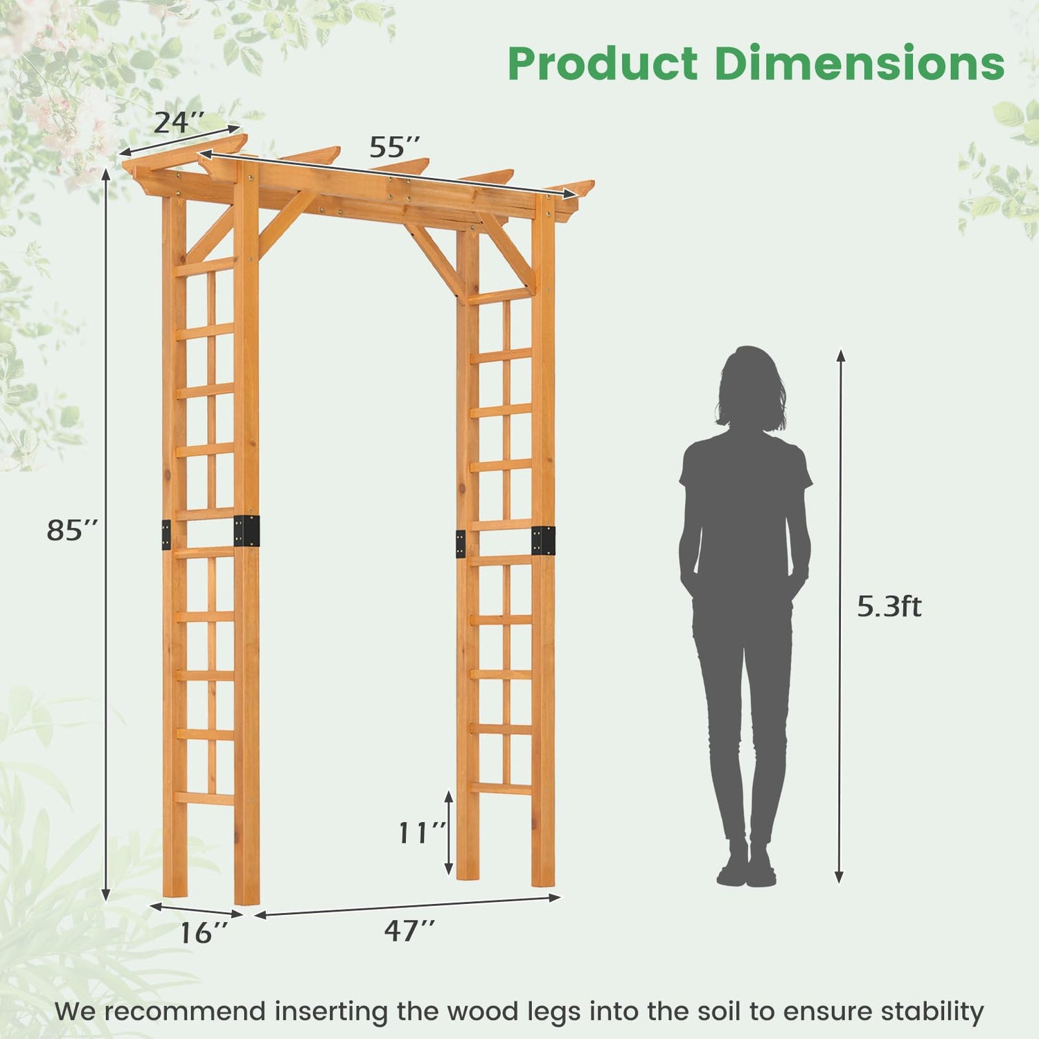 - [Rugged & Reliable Construction] Constructed from natural fir wood and reinforced with solid metal connectors, this garden arch is sturdy, warp-resistant, and built to last. The protective painting on the wood surface further enhances its durability against the elements.