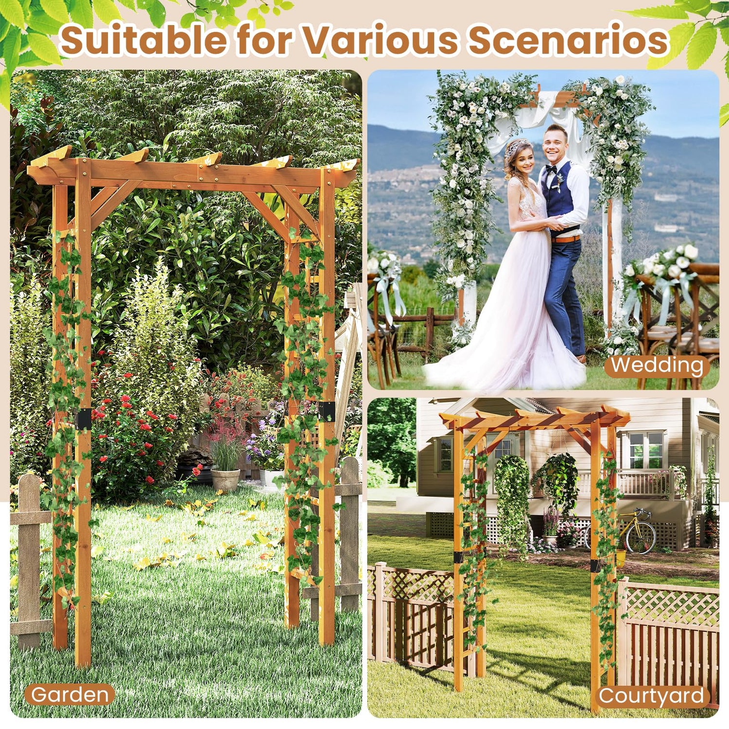 - [Perfect for Various Occasions] Ideal for anniversaries, outdoor weddings, or garden parties, this wooden arbor serves as an elegant backdrop and a unique entrance for your garden or courtyard, adding a touch of charm to any event.