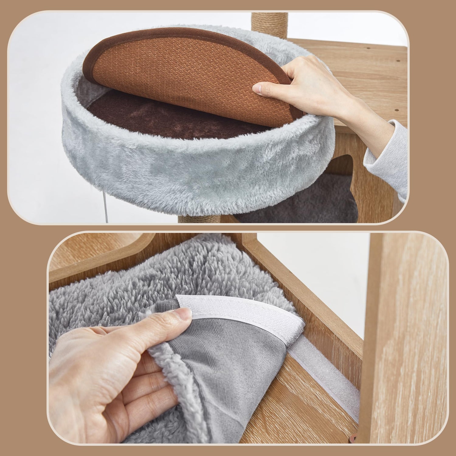- [ Wood Design for Safety and Stability ] - The product is made of high-quality wood that is water-resistant, scratch-resistant and easy to clean, ensuring its durability. Combined with sisal posts, the large base improves the stability of product and ensures the safety of cats while playing, especially for those large cats.