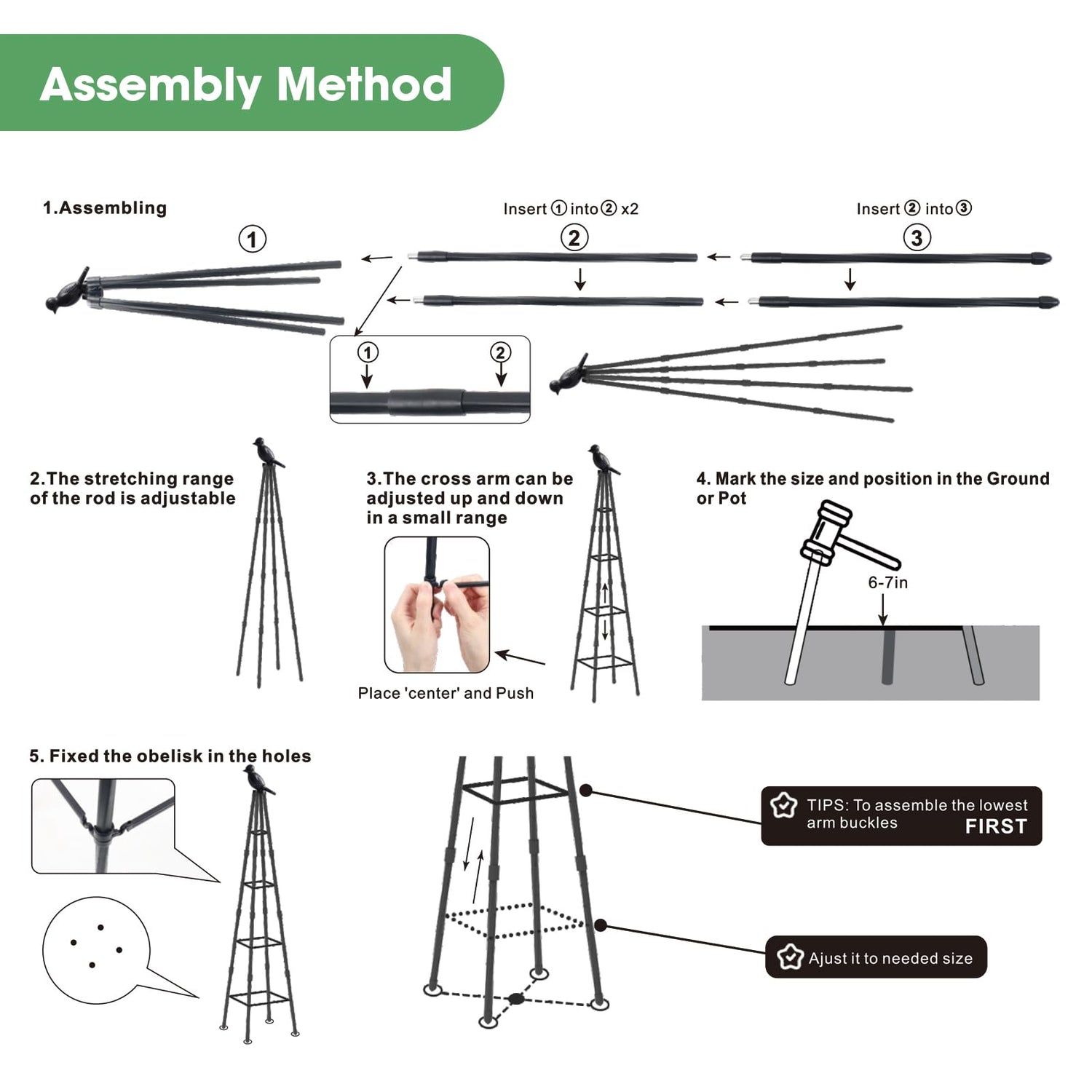 • 【Adjustable Design】: Trellis for climbing plants outdoor can be assembled to the right height according to different types of plants and growth cycles, to meet the support needs of plant growth.
