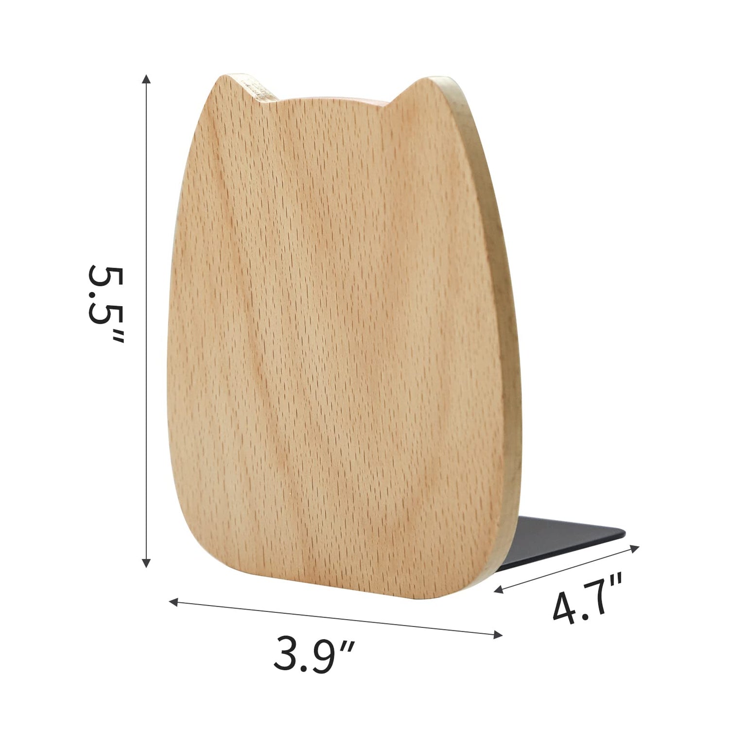 muso wood Bookends for Shelves, Book Ends for Home Office School Library Kitchen, Cute Book Stopper, Beech Book Holder 1 Pair