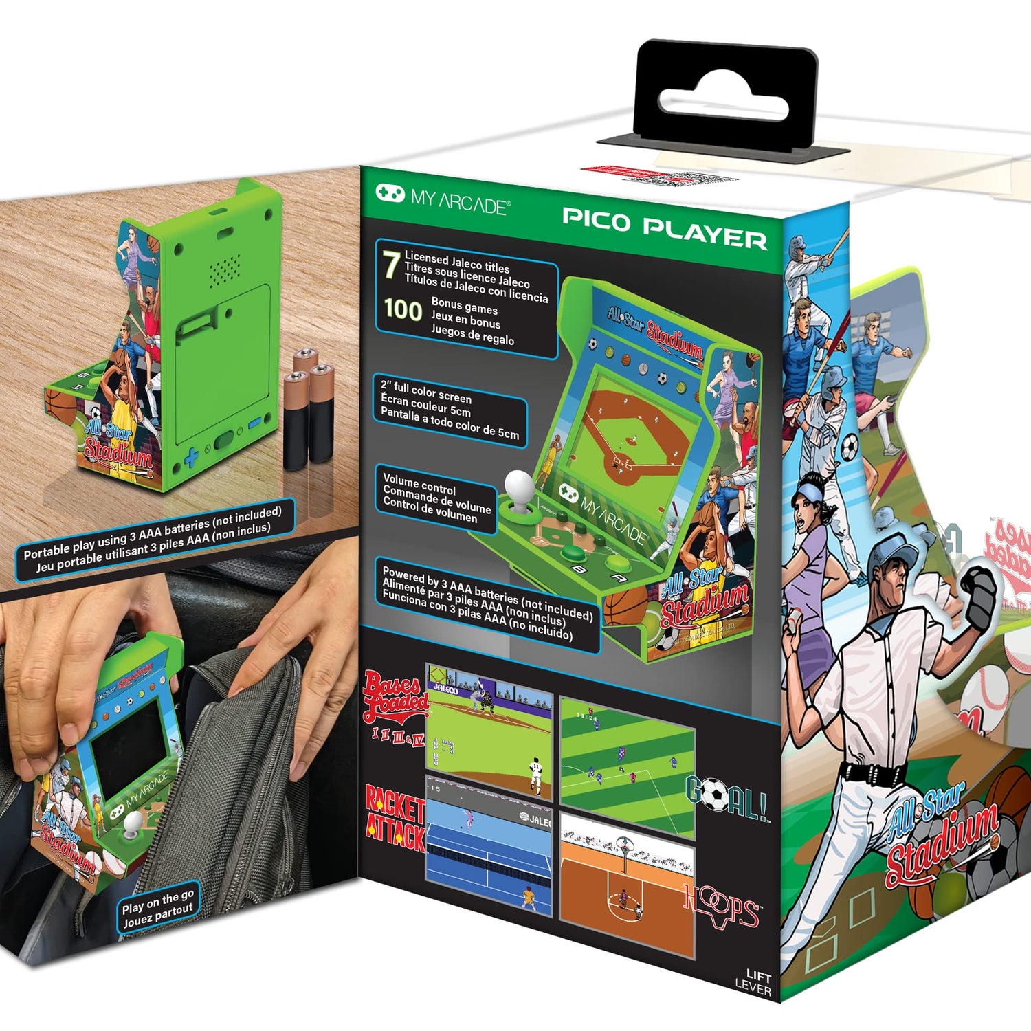 My Arcade All Star Stadium Pico Player- Fully Playable Portable Tiny Arcade Machine with 107 Retro Games, Toys for Kids, 2" Screen, Green, Small (DGUNL-4120)