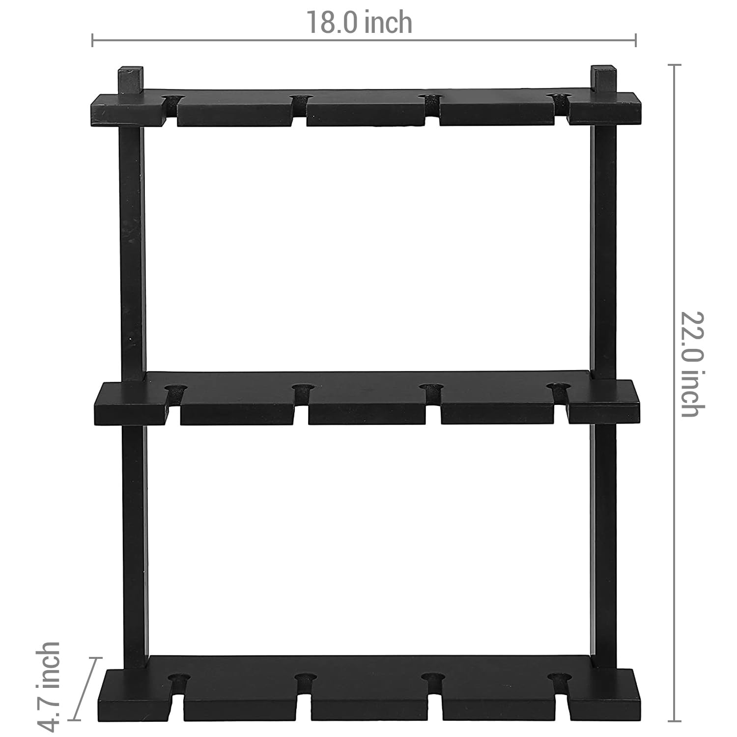 - Countertop double rack, wine glass stemware storage holder with black metal rails and rustic wooden base, can accommodate approximately 4 standard sized wine glasses