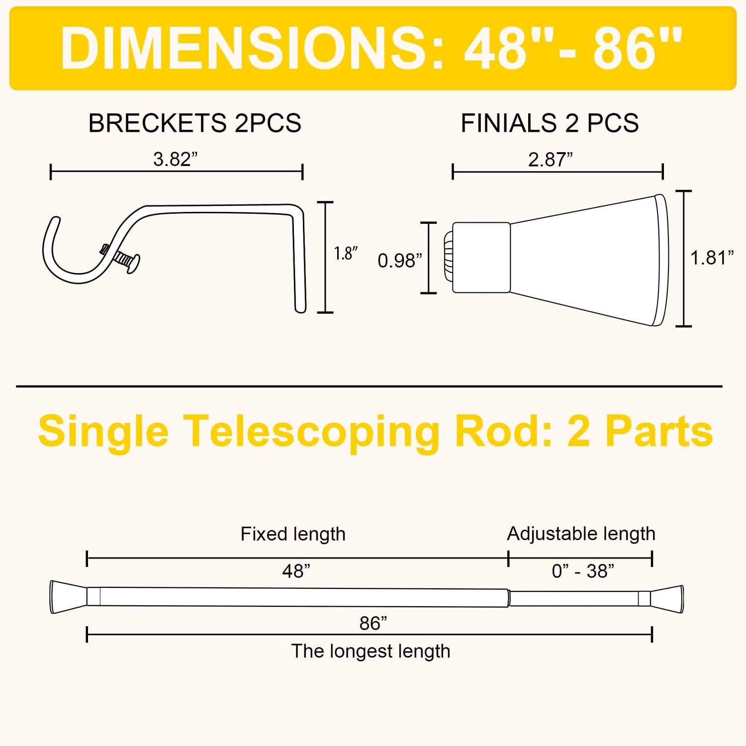 - Adjustable Length: The curtain rod can extends from 28 to 48 inch, and the rod diamater is 3/4 inch. The room darkening curtain rods adopt a unique design, making the curtains tightly adhere to the wall, providing good shading effect.