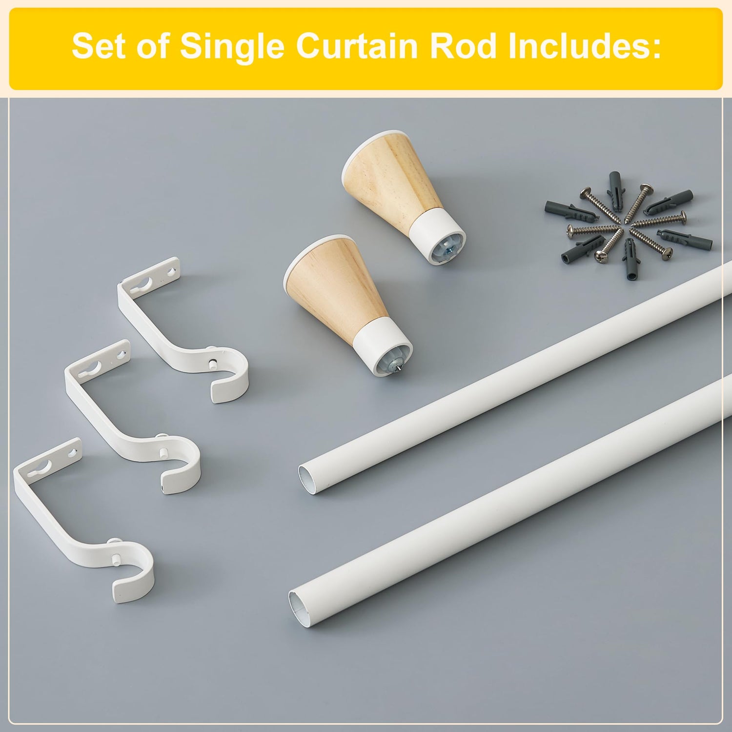 Details: NICETOWN Curtain Rod with Wooden Taper Ends for Windows, 3/4 Inch Diameter 48-86 inches Long Drapery Window Curtain Rod Set, Modern Drapery Treatment Window Curtain Rod with Adjustable Design, White