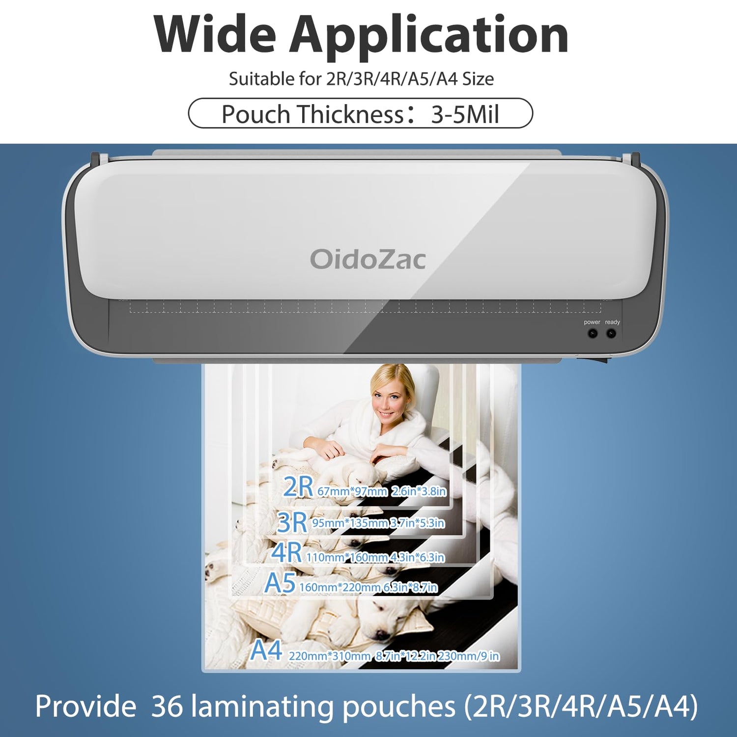 OidoZac Laminator Machine, 11 in 1 Laminating Never Jam Technology with 36 Laminating Sheets, 9 Inch Thermal Laminator A4 Laminating Machine Hot & Cold with Paper Trimmer for Home Office School