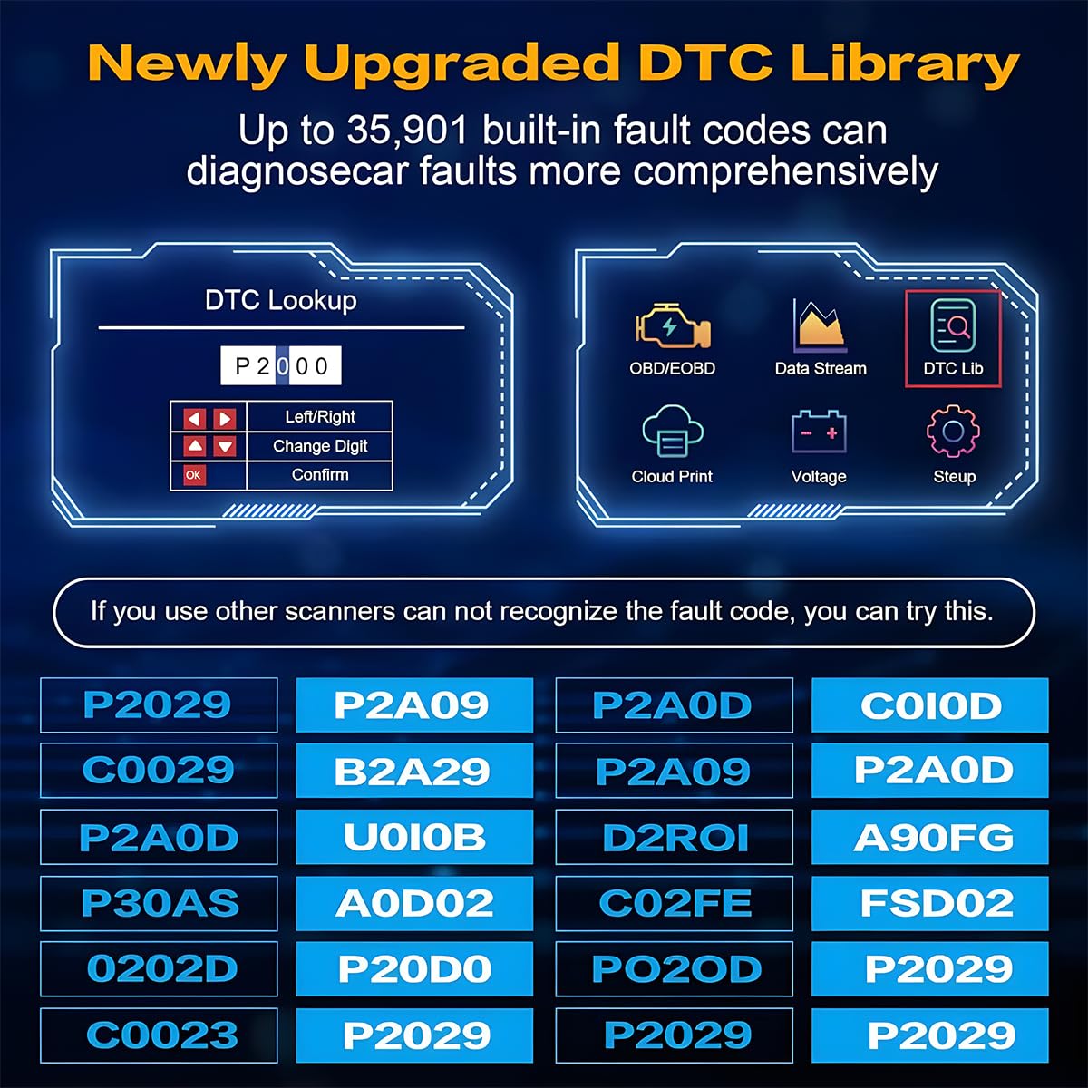- 【Built-in 35901 DTCs】: This V520 car code reader has 35,901 built-in DTCs, compared to the 3,000 typically found in older obd2 models. Therefore, it has a huge advantage to help you diagnose and view fault code definitions and troubleshoot your vehicle more comprehensively. It is very easy to troubleshoot even for beginners. This product is perfect for beginners, service technicians, automotive enthusiasts and home repair.