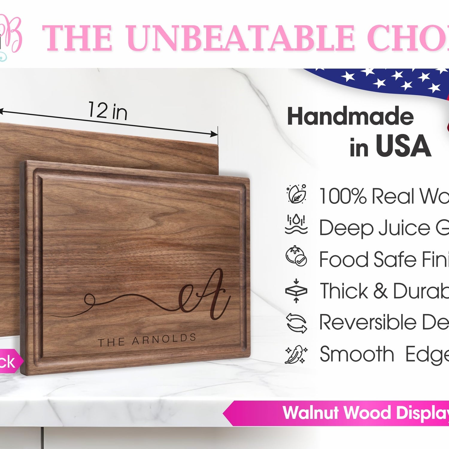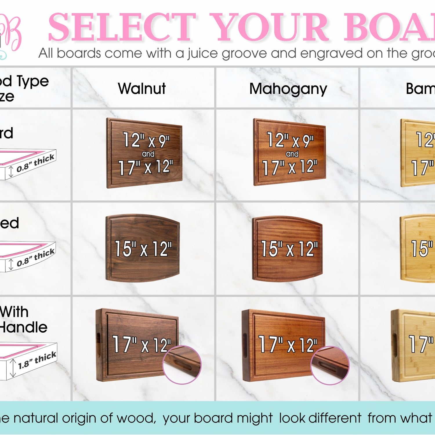 - ❤️ Made With Love: Our customizable boards from Wedding Gift Boutique come in various sizes and wood colors. They are produced by a small, family-owned business, renowned for their quality and style, distinguishing them from other custom cutting boards.