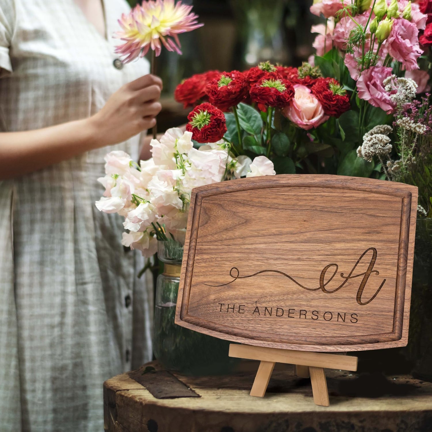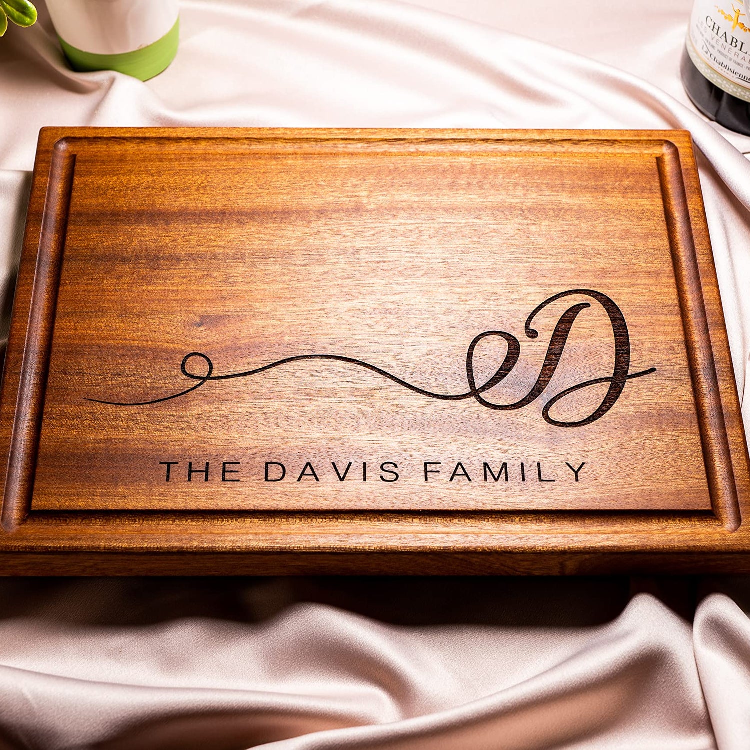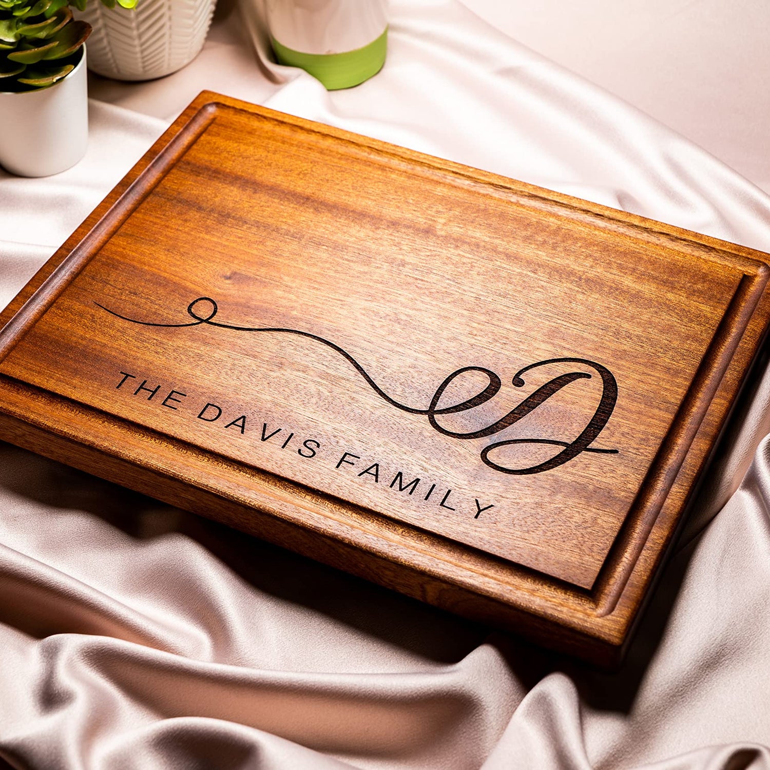 Personalized Cutting Board, Custom Wedding, Anniversary or Housewarming Gift Idea, Wood Engraved Charcuterie, for Friends and Family, Swirled Initial Design 080