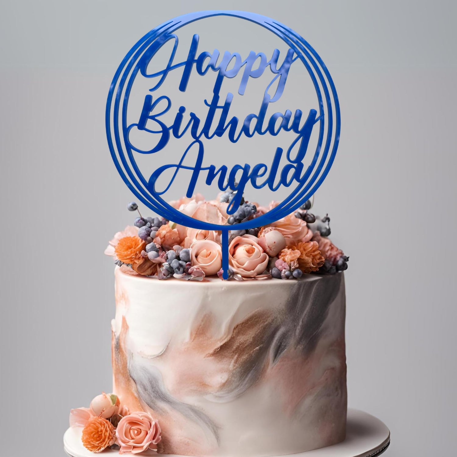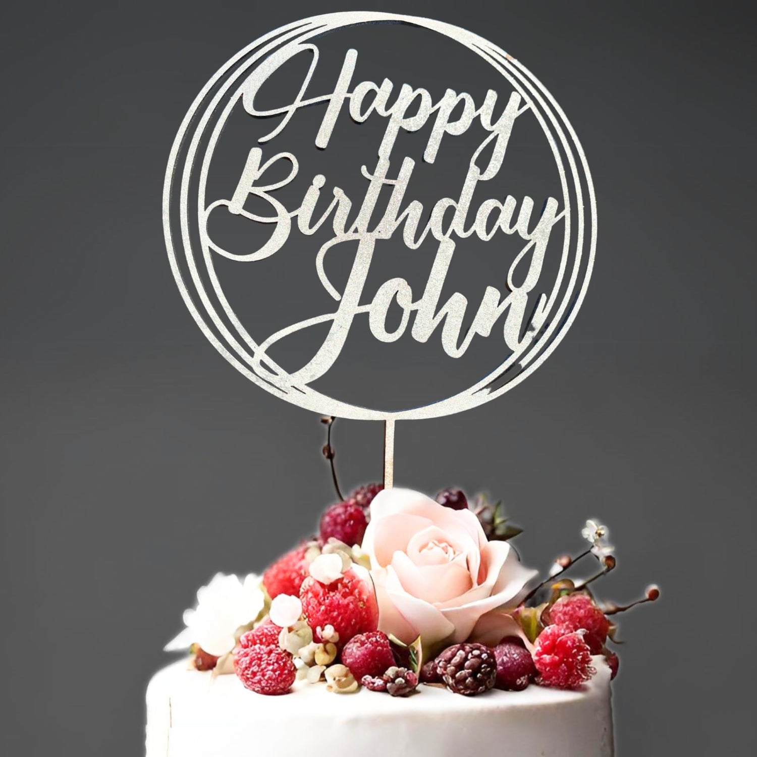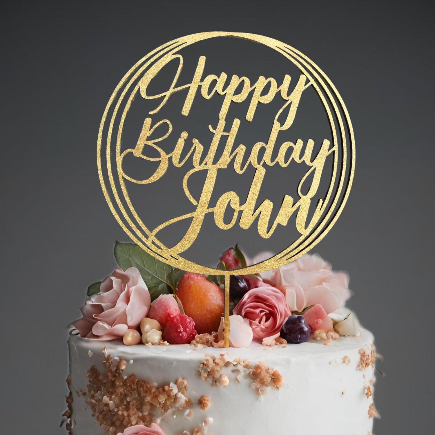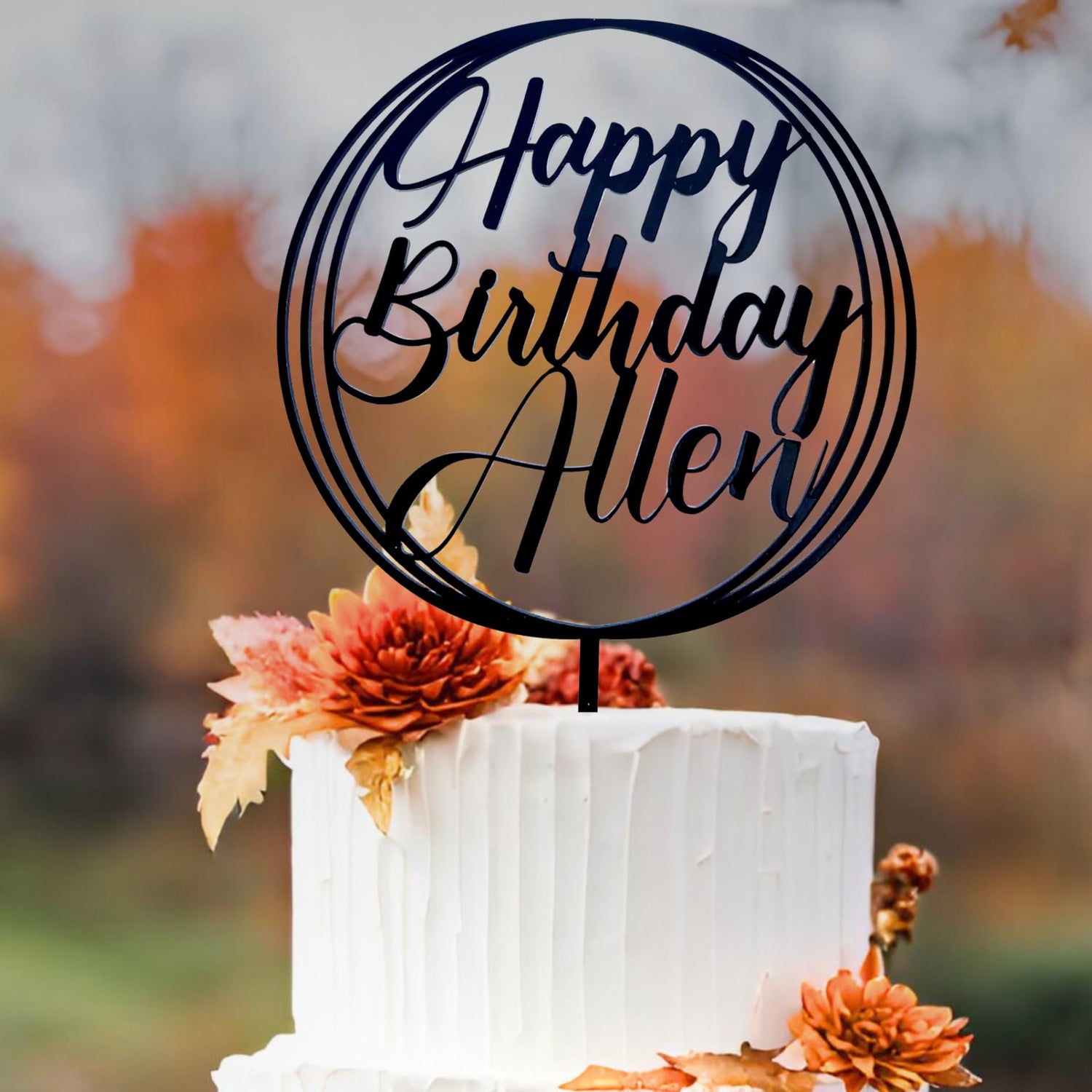 - Personalized Happy Birthday Cake Topper & Engagement Cake Topper features 6" wide x 1/8" Thick. Customize Your Handcrafted Moments in Time Happy Birthday Cake Topper by Clicking the customize now button to begin your personalization journey. This Cake Topper can be used for multiple occassions and celebrations.