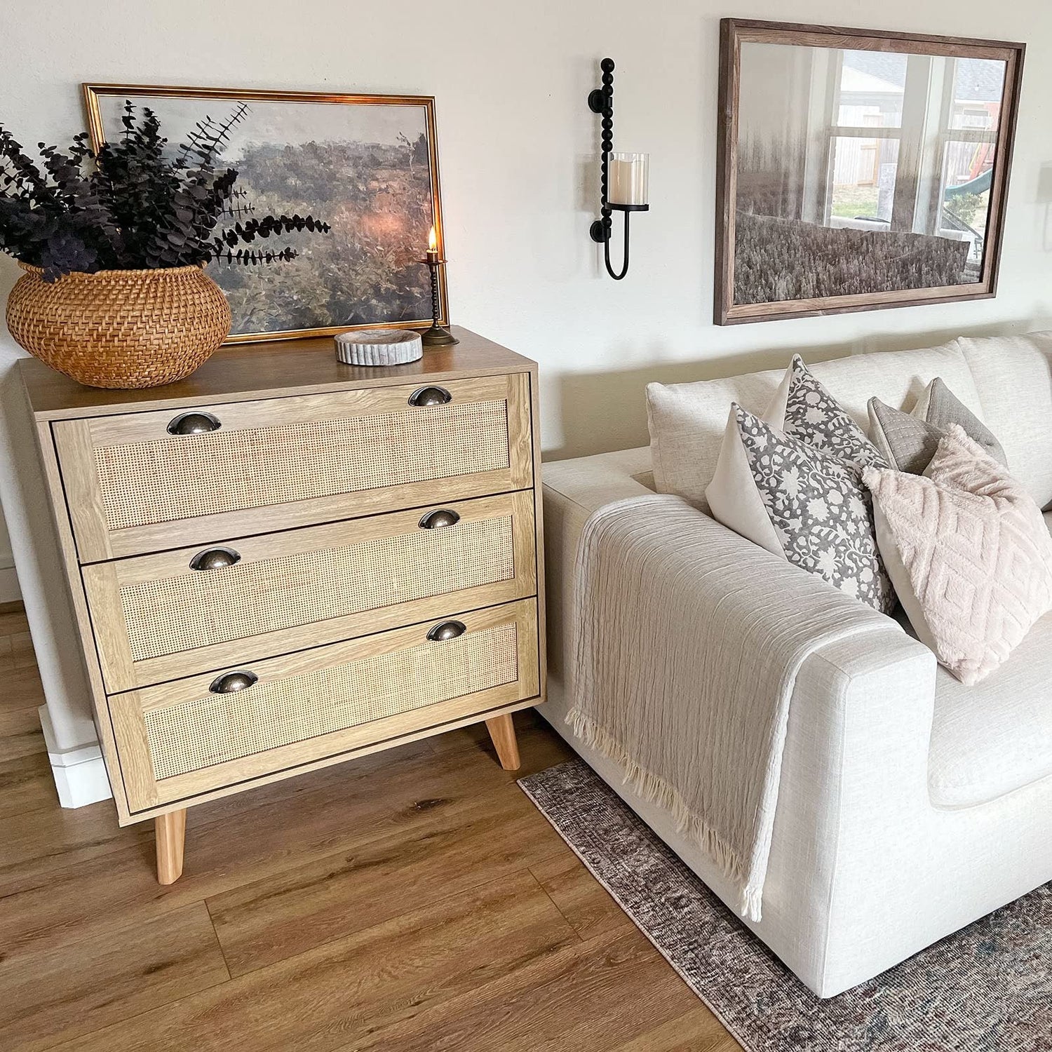 - Sturdy Rattan Dresser - Made of MDF board, very strong and scratch-resistant Long service life. The natural rattan not only has the effect of absorbing moisture and heat but also delivering perfect visual effect, add charming to your home