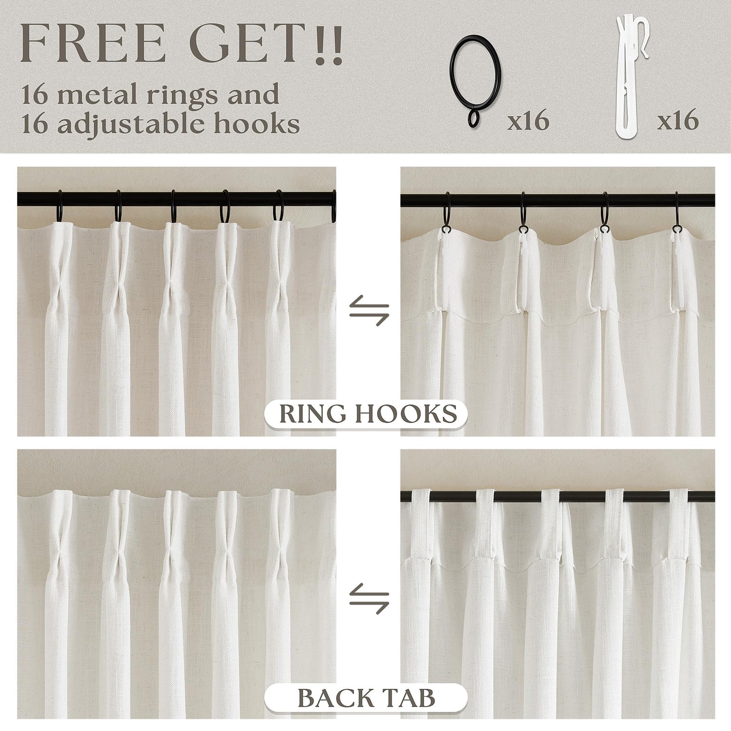 Pinch Pleated Linen Curtains 108 Inches long for Living Room 2 Panels Set Cream Ivory Flax Double Pleated Drapes Back Tab Neutral Boho Ceiling Floor 108 Inch Window Curtains Bedroom Natural Birch