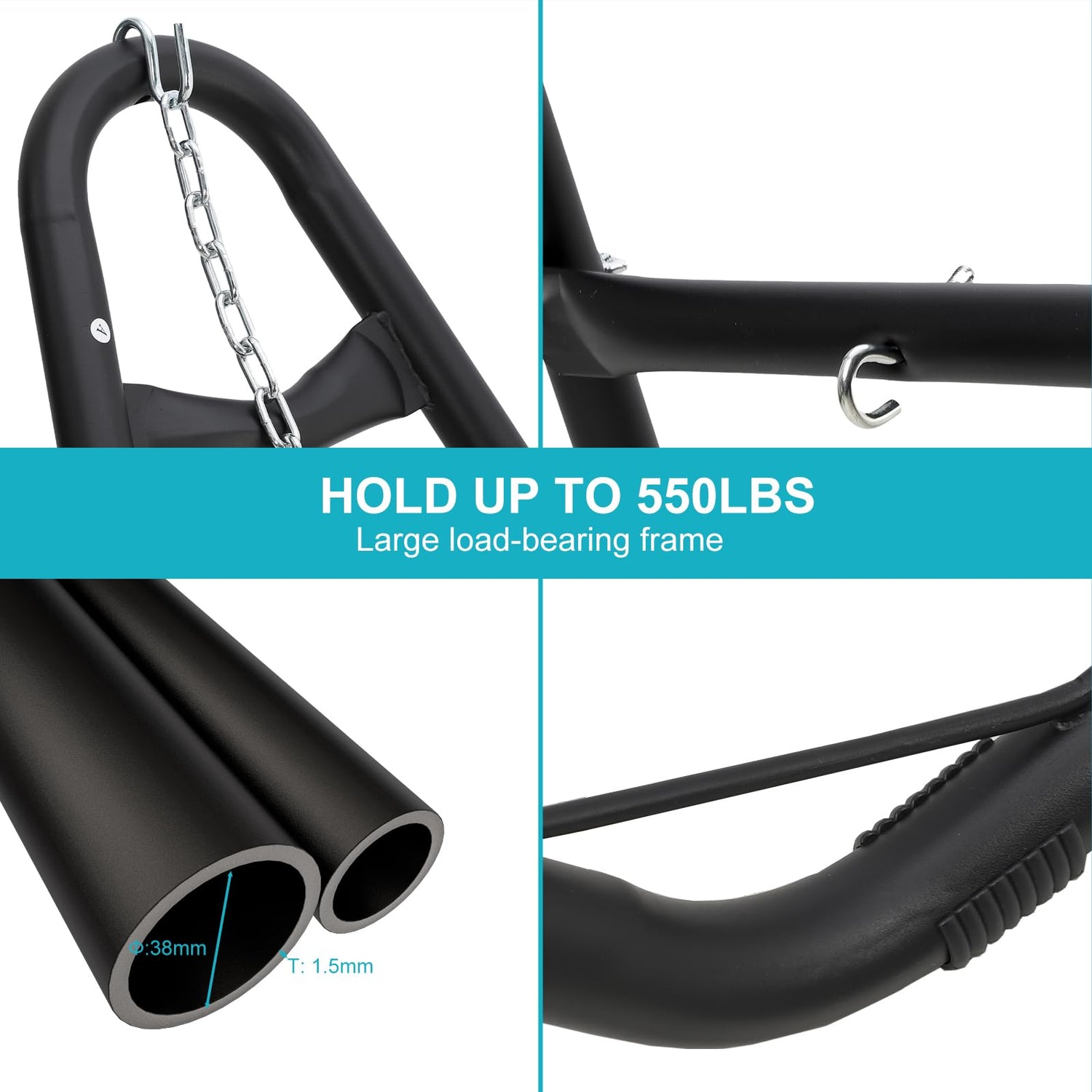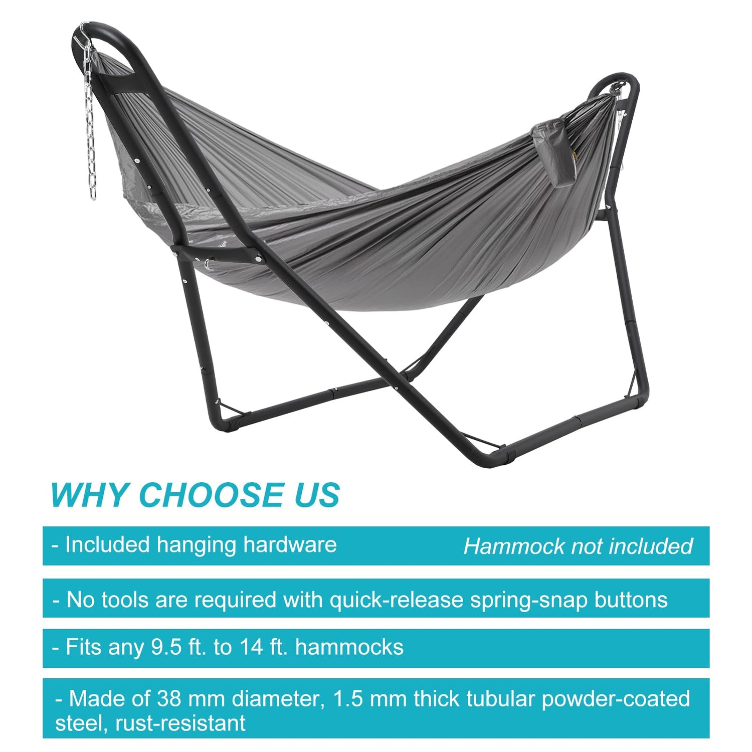 - 550LBS CAPACITY & DURABLE: Reinforced with robust double rods and triangular structure capable of supporting up to 550 lbs. The heavy-duty hammock stand is made from 1.5" tubular powder-coated steel for added longevity and resistance to rust, ensuring your hammock frame remains strong and reliable even in varying weather conditions