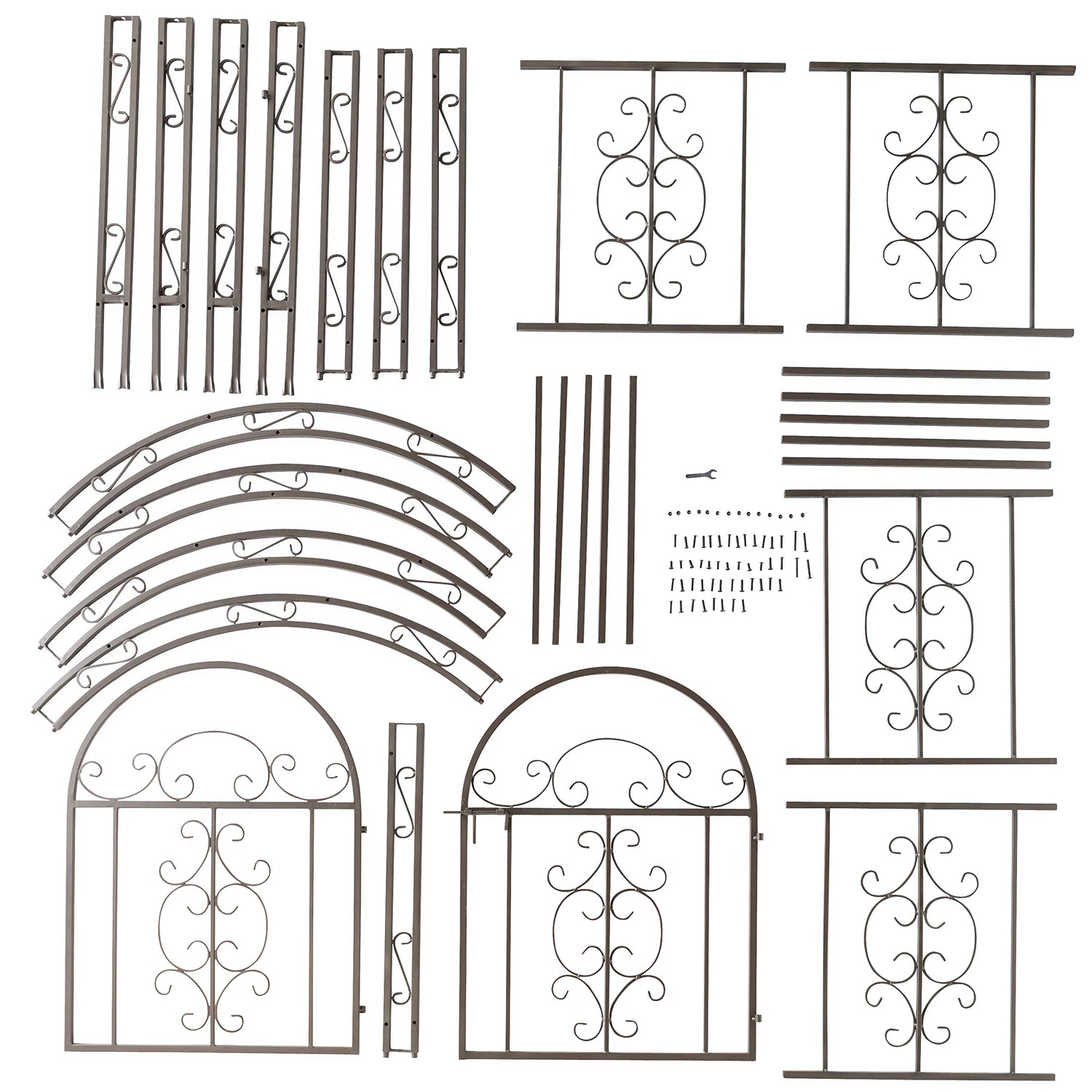 • ENHANCE YOUR GARGEN'S CHARM: Elevate your outdoor space with this exquisite metal garden arbor, standing at 84 inches tall. Perfect for supporting climbing plants and vines, it's ideal for creating a natural privacy fence or a vibrant landscape edging. Its elegant design adds a touch of sophistication to any garden, patio, or backyard.