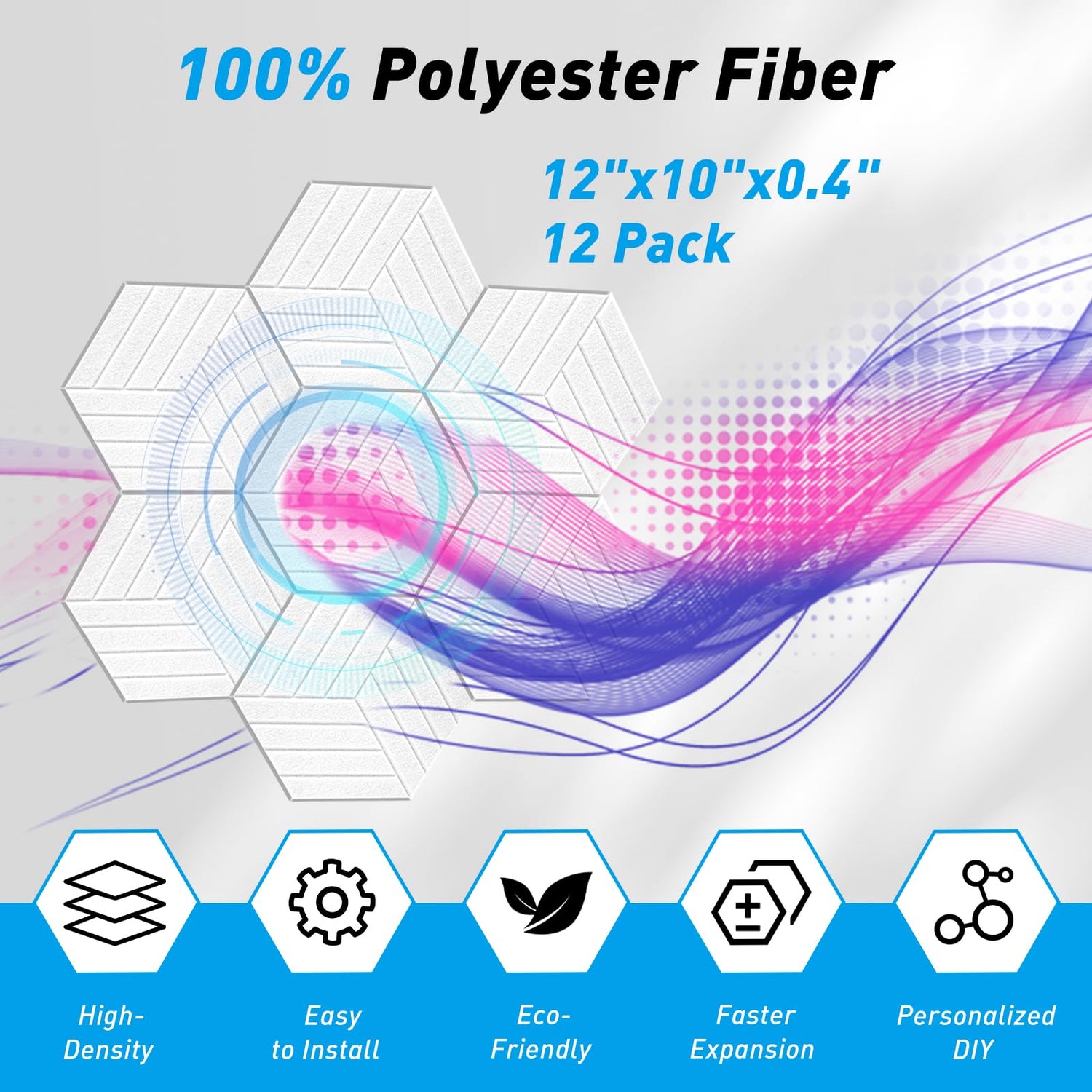 - 【High Density Material】Size 12" X 10" X 0.4" and light weight, it is easy to apply and wide application. Made of 100% polyester fiber material, the overall sound-absorbing panel is odorless, non-toxic, formaldehyde-free.