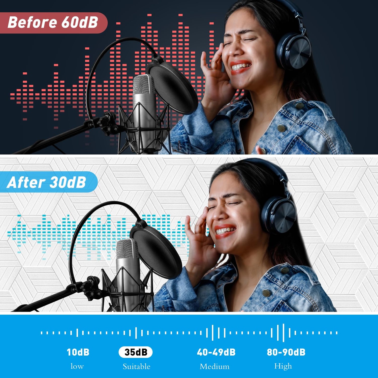 - 【Great Decorate in Life】Unleash your creativity to decorate your unique space! Podazz hexagonal sound absorbing panel adopts beveled edge design, great for studio space, home studio, music studio, theater room, office, podcasts, bedroom, basement. Deadening sound using absorption panels, and also a aesthetic solution to improving echoes rooms.