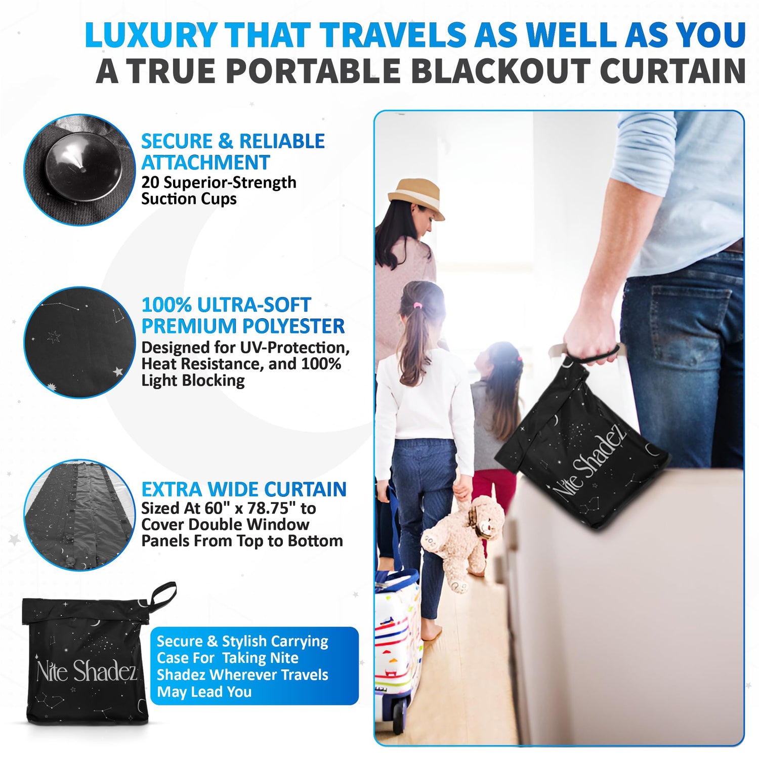Portable Blackout Curtains (60" x 80") - Travel Blackout Curtains for Baby Nursery w/Stars - Portable Blackout Shades w/UV & Thermal Protection - 20 Stick on Suctions & Velcro Blackout Window Cover