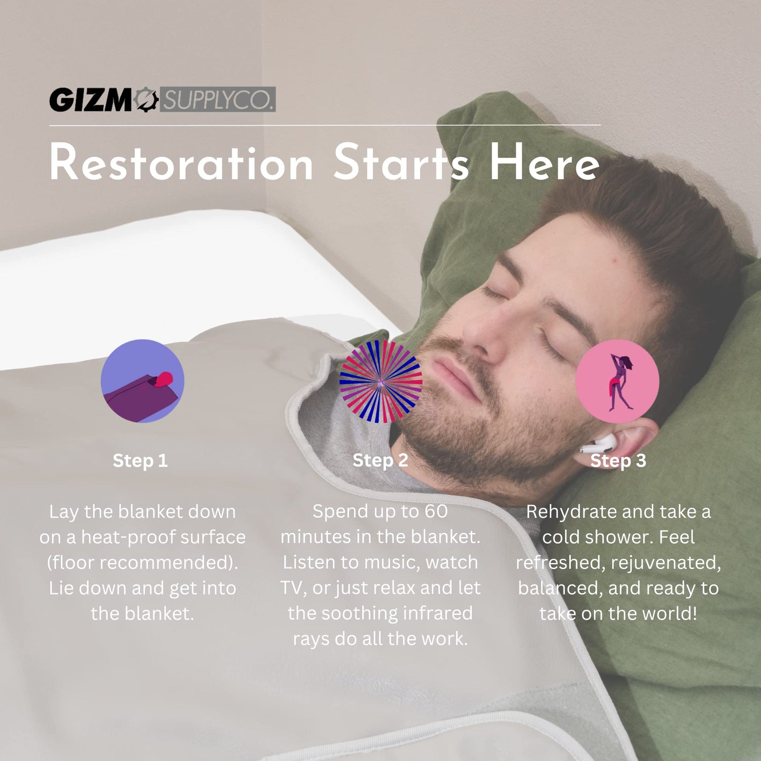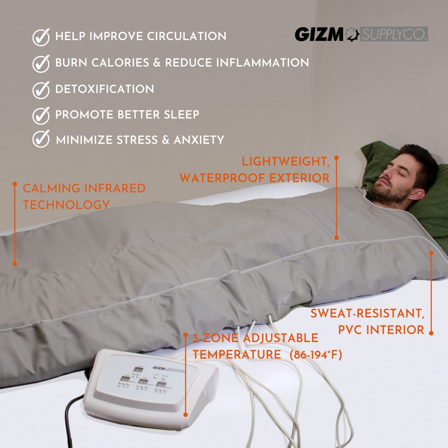 Portable Far Infrared Detox Sauna Blanket Regular (68" x 75") - 3 Independent Heating Zones, Carbon Fiber Heating Elements by Gizmo Supply - for Home or Professional Use