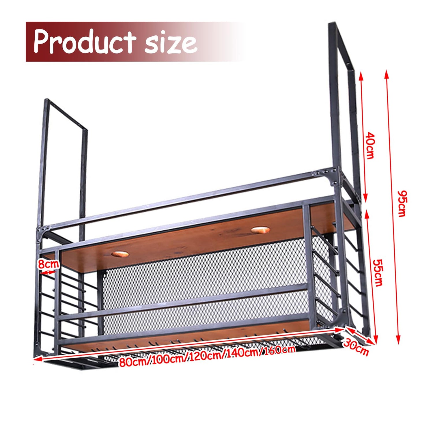 - Size: Material: Metal, Size: 31.49x37.40x11.81in /39.37x37.40x11.81in/47.24x37.40x11.81in /55.11x37.40x11.81in /62.99x37.40x11.81in, Wall mounted Wine Rack with a large wine storage area and a tall glass holder, so you can freely place all kinds of bottles.