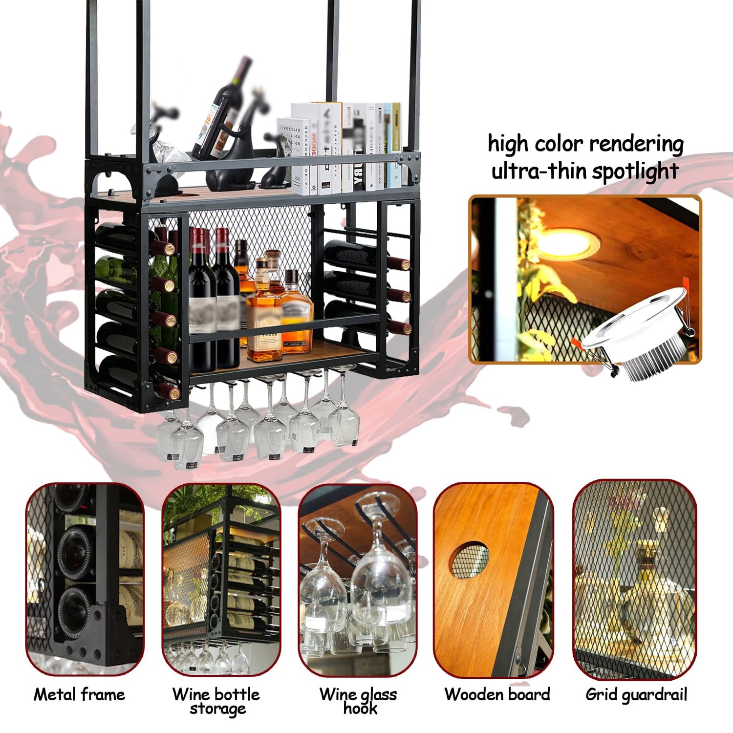 - SPOTLIGHT: Hanging wine bottle rack with 2 spotlights provides near sunlight quality light for true color rendering and consistency in your home, more vibrant.