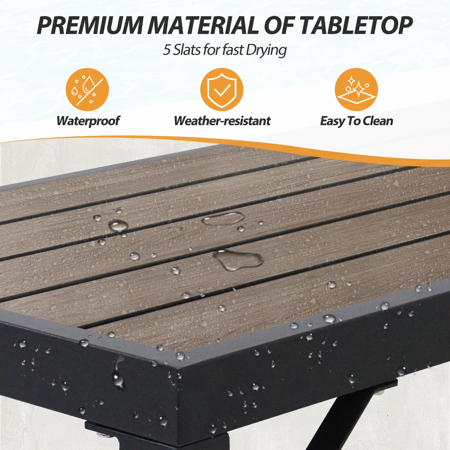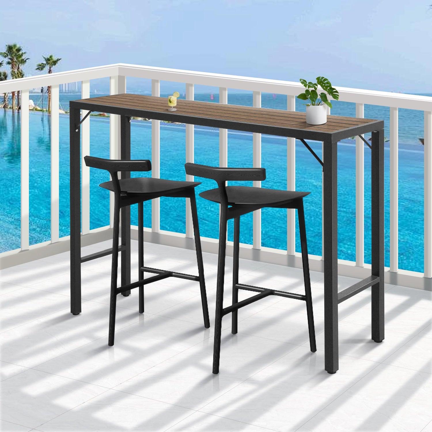 - 🍹UNIQUE & STYLISH DESIGN: Crafted with a stylish wood-plastic composites top, this patio bar table adds a touch of elegance to your space while offering a natural and warm aesthetic to complement your outdoor space.
