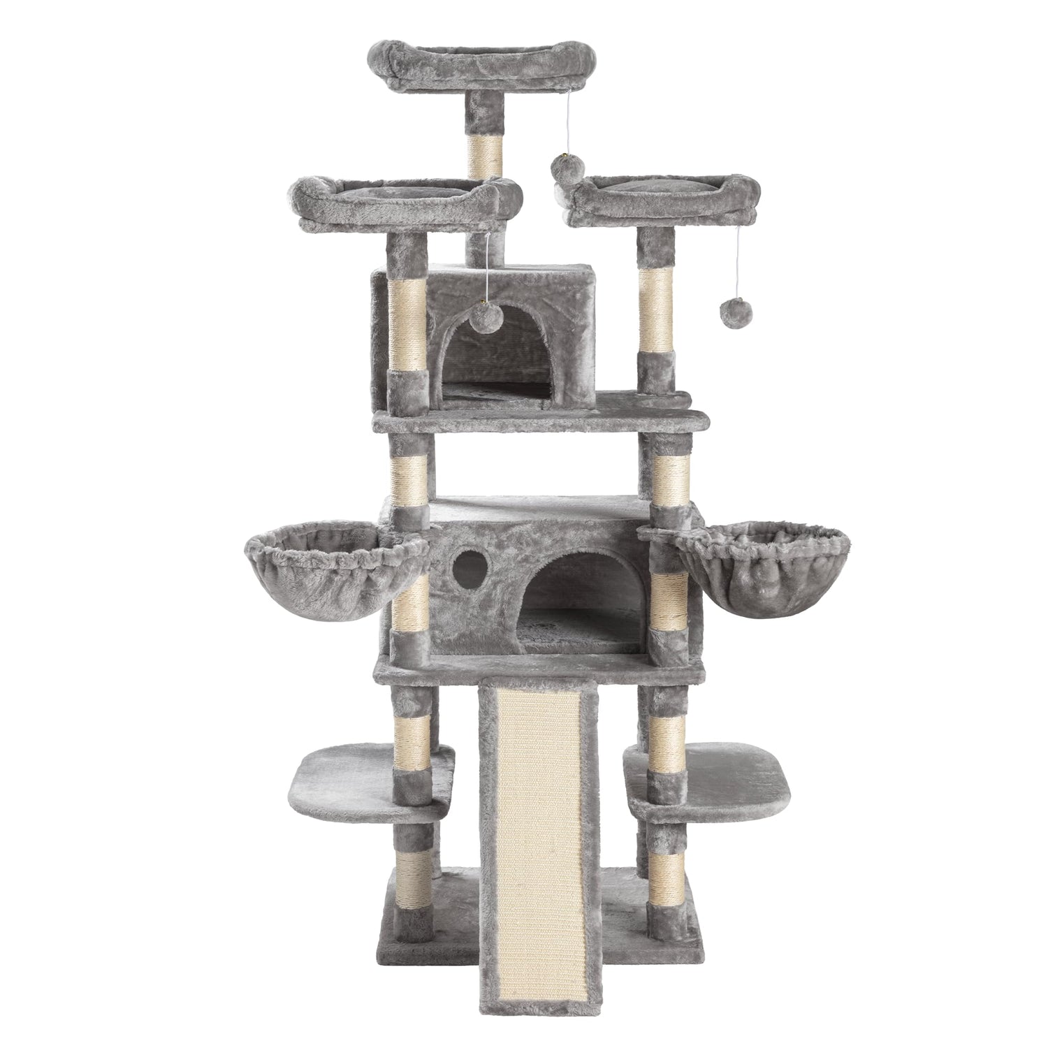SHA CERLIN 68 Inches Multi-Level Large Cat Tree for Large Kitties/Big Cat Tower with Condo/Cozy Plush Pussycat Perches/Sisal Scratching Posts and Hammocks/Activity Center/Grey