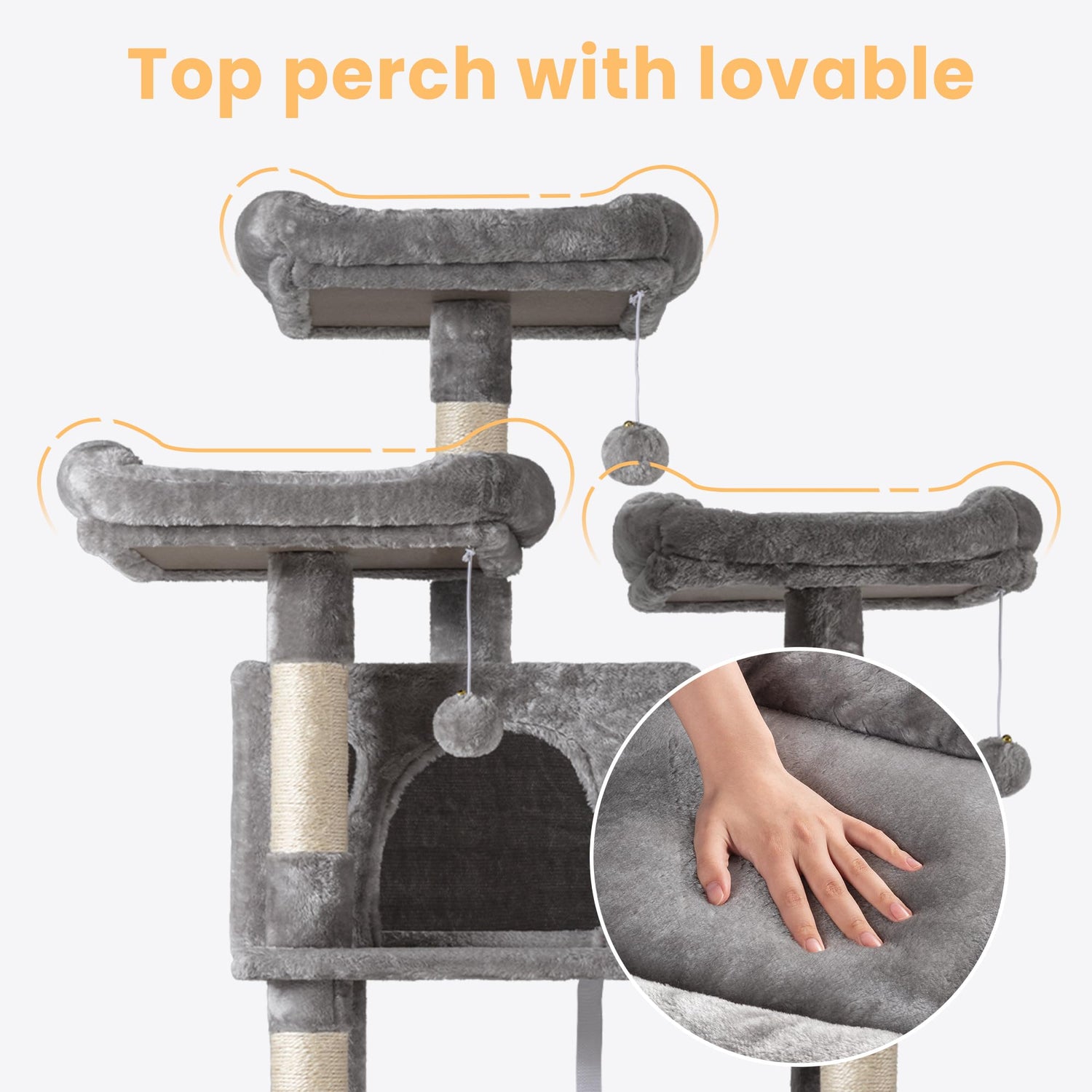 - Solid and Stable: The cat tree is made of high-quality particle board with a plush covering, and the strengthened base is strong enough to support 33 lb