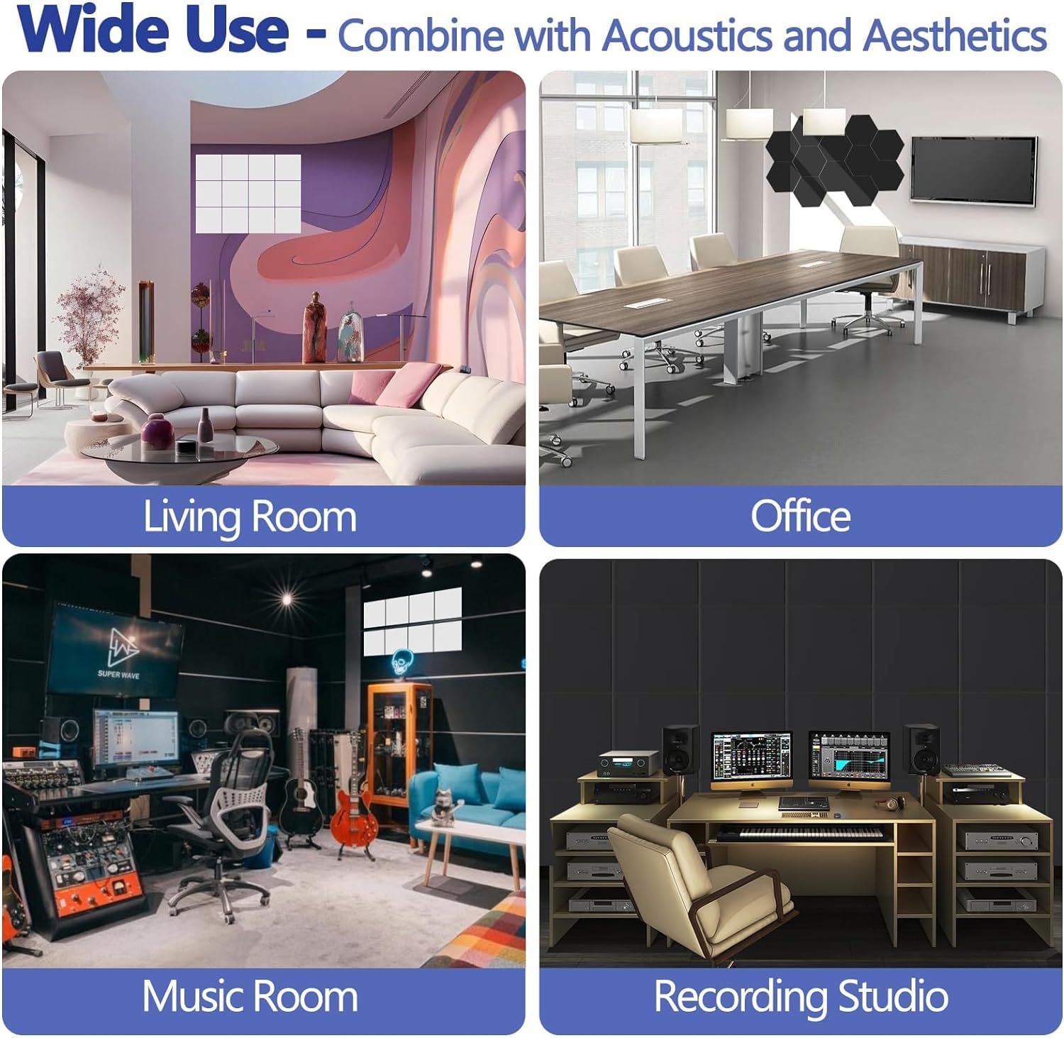 - [SUPERIOR SOUNDPROOFING]: Our acoustic panels are made of high-performance polyester fiber material, which has excellent sound absorption effect and can significantly reduce environmental noise and improve sound quality.
