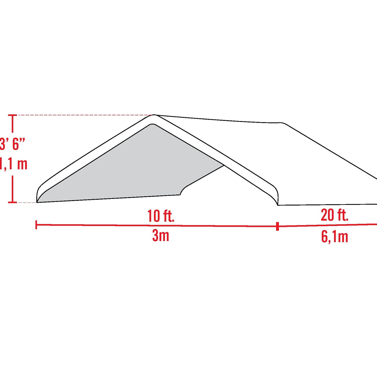 The ShelterLogic MaxAP 10 x 20 ft. Canopy Replacement Cover is the ready to install canopy top. It is designed to the exact frame specifications of the 10 x 20 ft. 1 3/8 in. MaxAP Canopy. Don't settle for cheap tarps or aftermarket covers to replace your canopy top; insist on authentic ShelterLogic brand canopy covers. Polyethylene cover is 100% waterproof, features 50+ UPF Sun Protection blocking 98% of harmful UV Rays, and is treated to withstand the outdoor elements. Perfect for refurbishing worn out or damaged canopy covers.