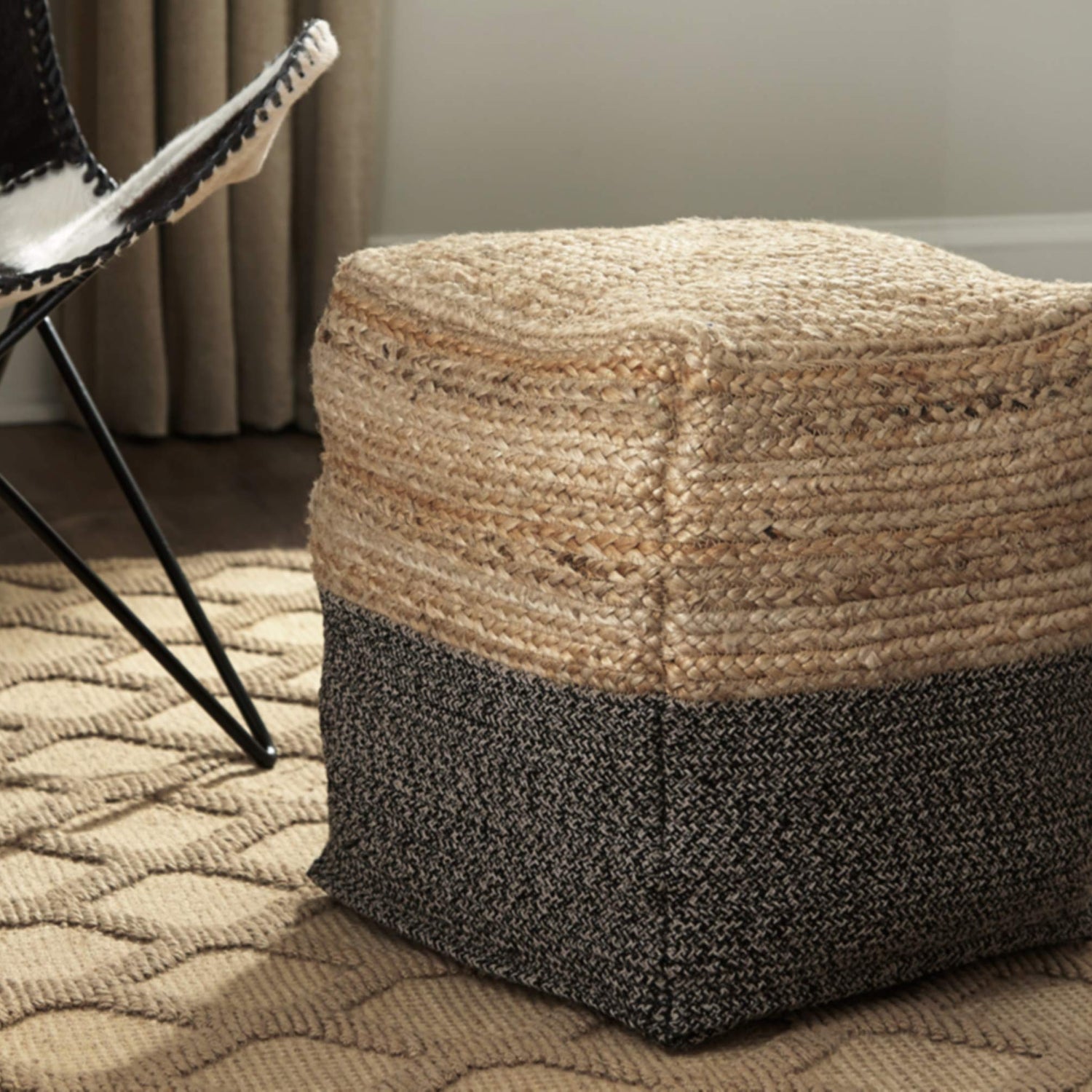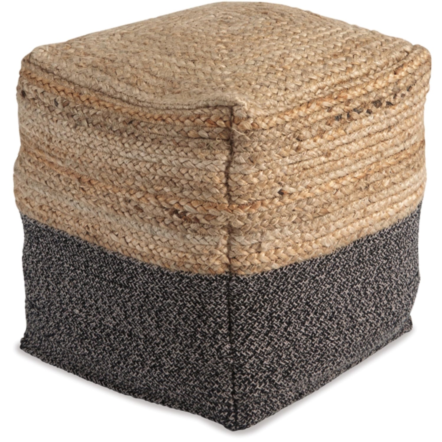 Signature Design by Ashley Sweed Valley Farmhouse Jute Braided Pouf, 17.5 x 20.25 inches, Natural & Black