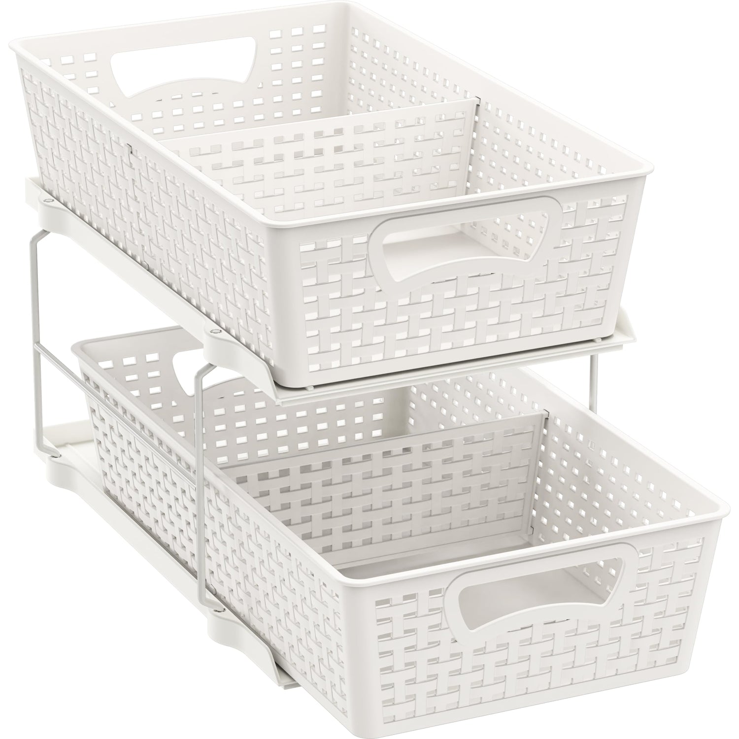 Simple Houseware 2 Tier Bathroom Organizer Tray Pull-Out Sliding Drawer/Under-Sink Storage, White