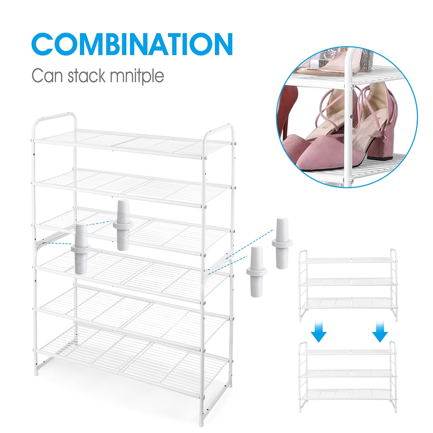 - 【STACKABLE AND EXPANDABLE FOR DIY】2 sets can be stacked vertically to get a complete 6-tier shoe rack or bridged horizontally to expand the unit.