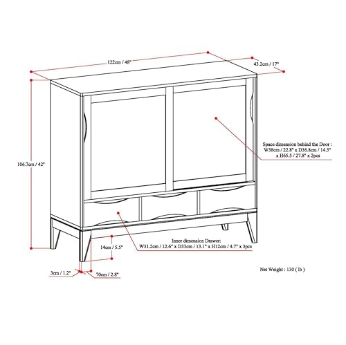 Details: The Harper Medium Storage Cabinet is an attractive, contemporary functional and versatile piece. This cabinet is crafted of solid hardwood with a rich Walnut Brown finish. The two notched handle doors slide open to two adjustable shelves that you can reconfigure to suit your needs. The three bottom drawers provide more compact and organized storage space. Use the Harper Medium Storage Cabinet in your family room, living room, dining room, hallway or den.; Efforts are made to reproduce accurate colors, variations in color may occur due to computer monitor and photography; At Simpli Home we believe in creating excellent, high quality products made from the finest materials at an affordable price. Every one of our products come with a 1-year warranty and easy returns if you are not satisfied.