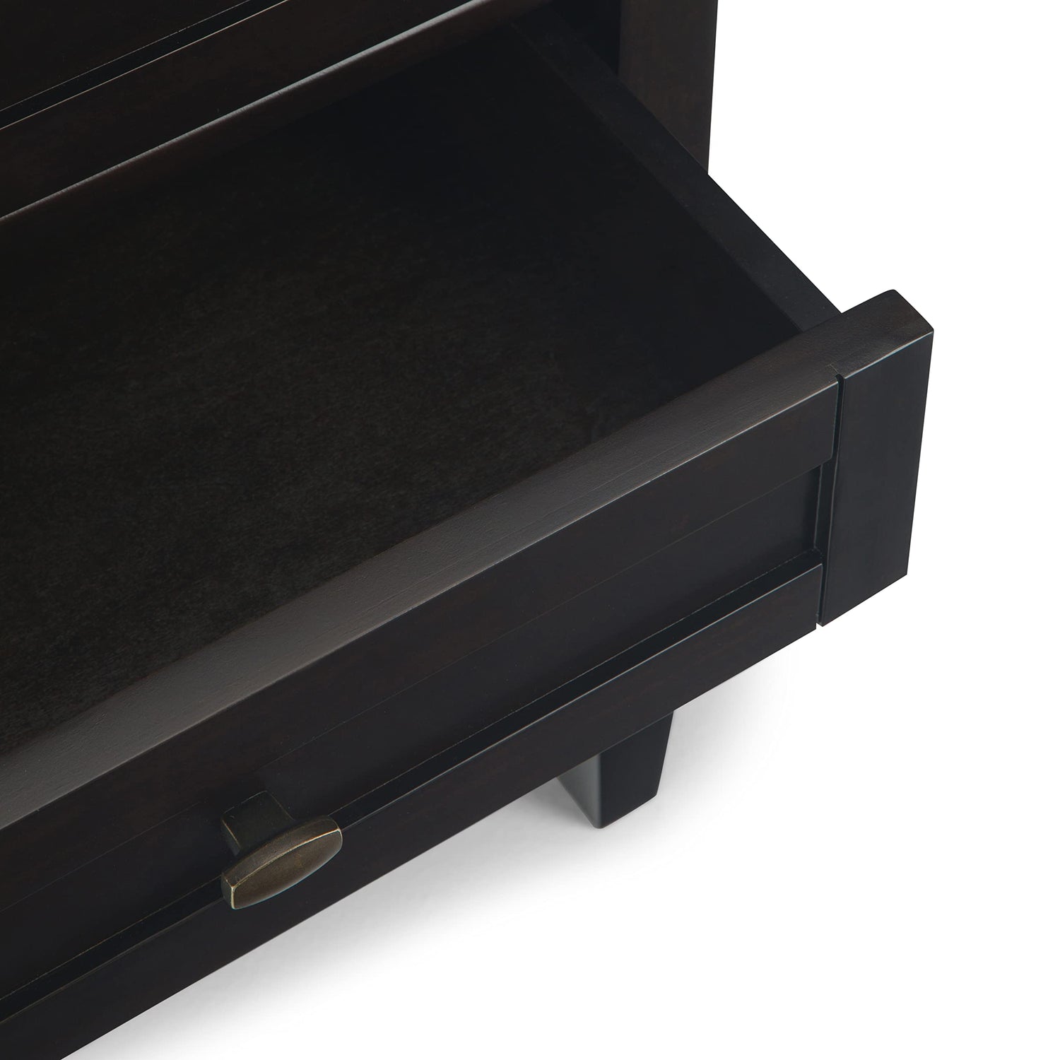 Details: Keep your bedtime essentials within reach on the Warm Shaker Bedside Table. The ideal bedside accessory, the nightstand has two drawers for concealed storage of small items as well as an open shelf on the bottom for books and larger items. Constructed of solid wood, this product is a sturdy piece that’ll fit wonderfully into your bedroom, living or family room décor. Available in dark brown or honey brown; Efforts are made to reproduce accurate colors, variations in color may occur due to computer monitor and photography; At Simpli Home we believe in creating excellent, high quality products made from the finest materials at an affordable price. Every one of our products come with a 1-year warranty and easy returns if you are not satisfied