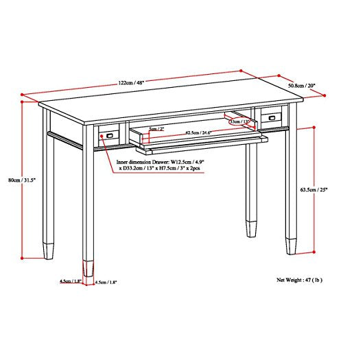 Details: You don't have to avoid going to the office ever again. Enjoy comfortable computing and work from home or office with the Warm Shaker Desk. Its large surface area is ideal for a monitor, laptop or tablet and leaves enough room for paper, books and other writing accessories. It features a pull-out keyboard tray behind a flip down shaker drawer front plus two side drawers for additional storage space. Ideal for the home office or living room settings.