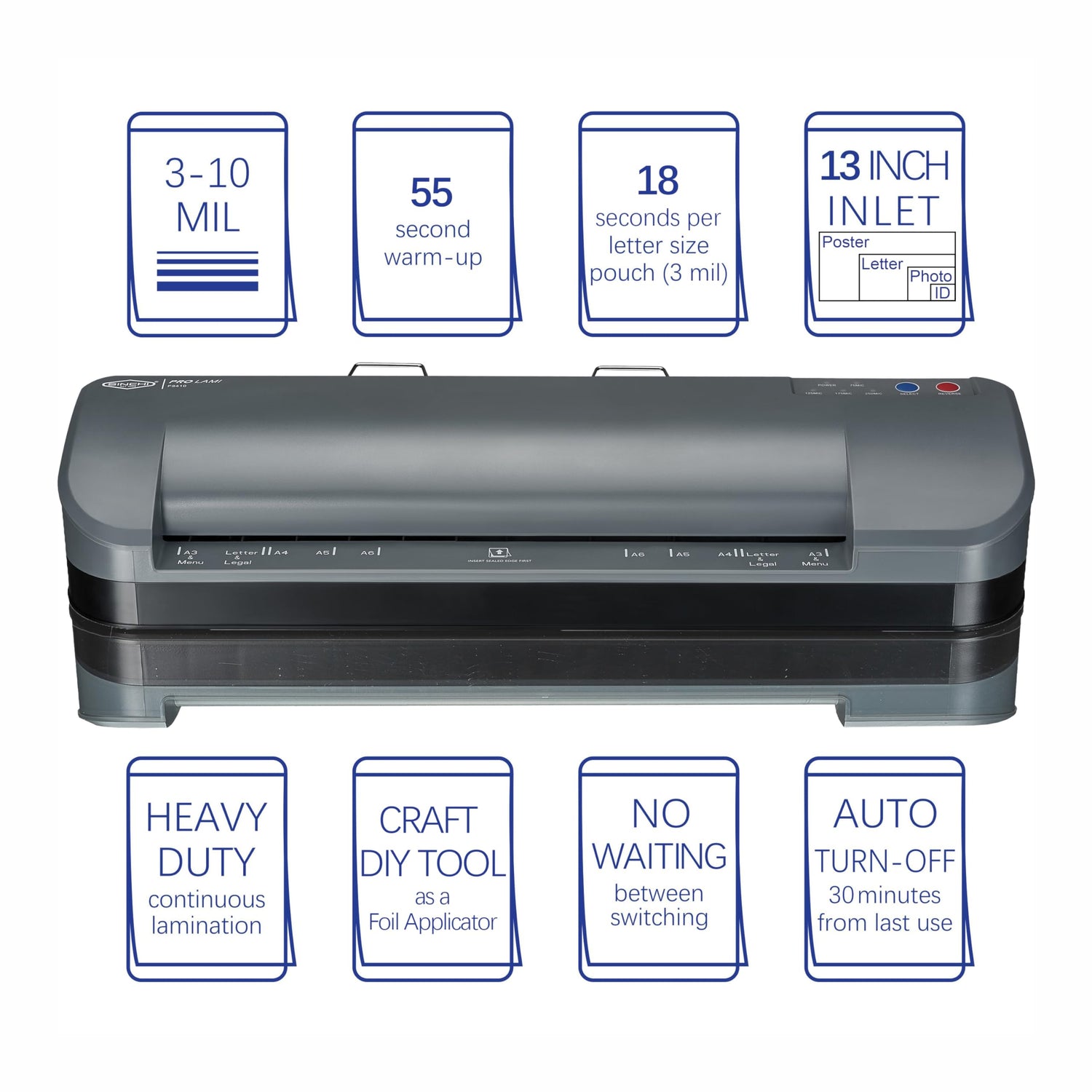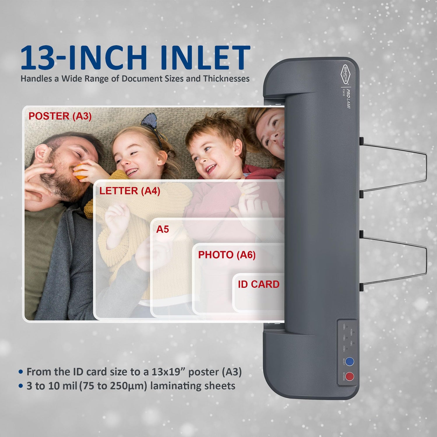 - 【Wide compatibility】The 13-inch inlet accepts all standard pouches from ID card to 13" x 19" poster size, 3 to 10 mil per side.