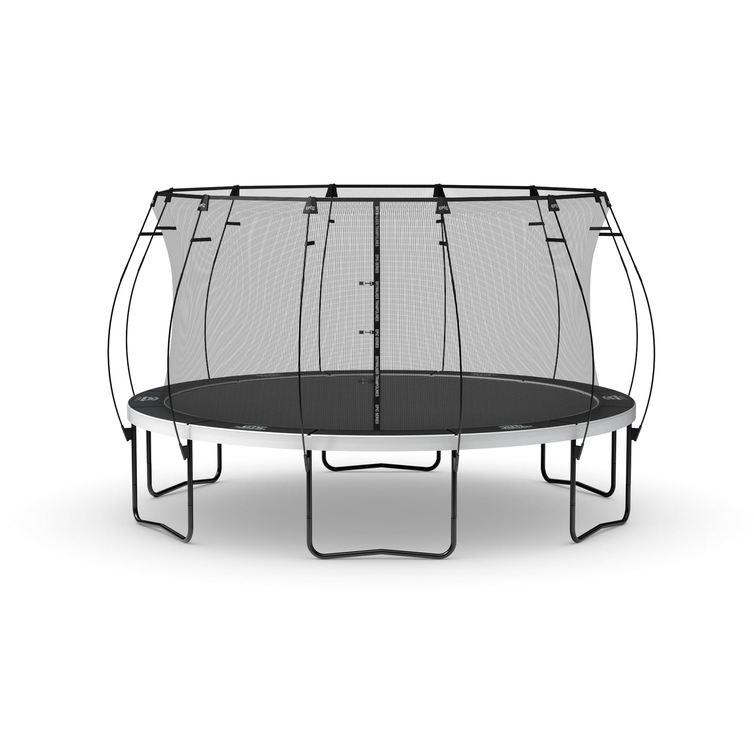 - EPIC PERFORMANCE: On this recreational trampoline, enjoy a premium bounce with a higher spring count suspended from a rust-resistant galvanized steel frame. Instead of the typical six enclosure poles, this trampoline for kids and adults features 12 flex rods that cushion and absorb impact on the enclosure net.