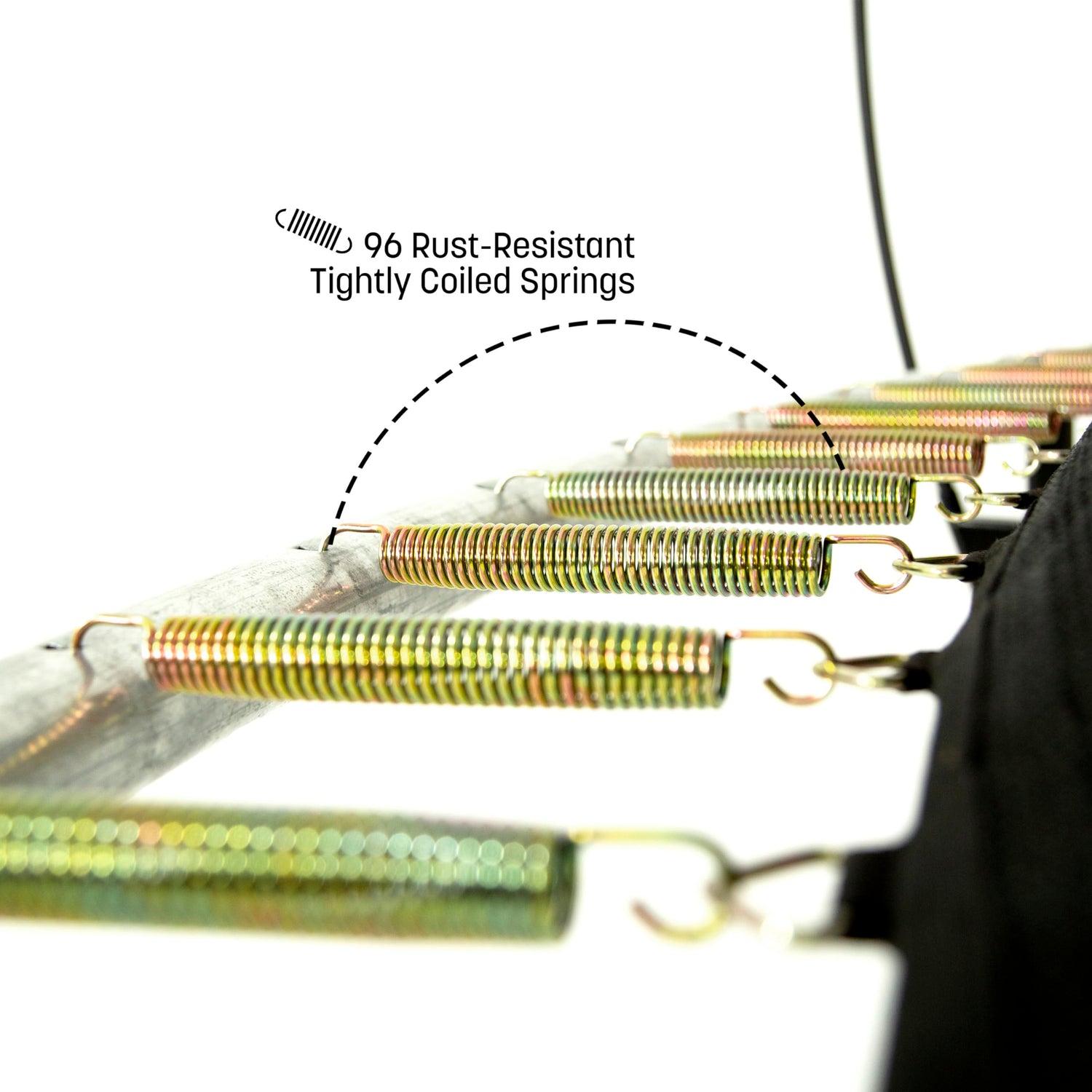 - DURABILITY: Enjoy endless family fun on your backyard trampoline for kids with the support of a galvanized steel frame. Thanks to the black powder-coated rust resistant frame, this large kids trampoline outdoor use is a safe trampoline where your kids can thrive.