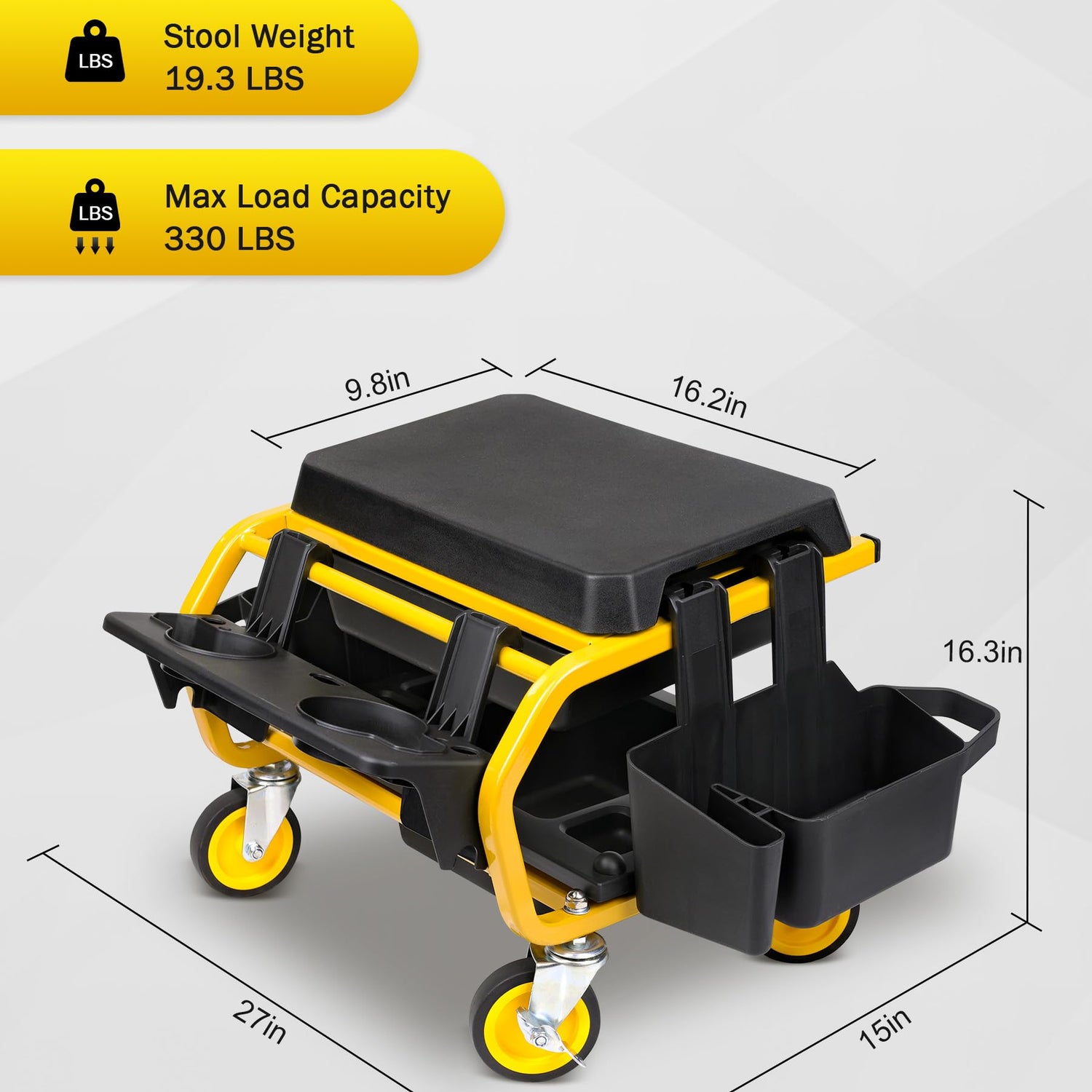 - Crafted from reinforced heavy-duty steel frame, this mechanic roller seat can withstand a maximum weight of 330 pounds