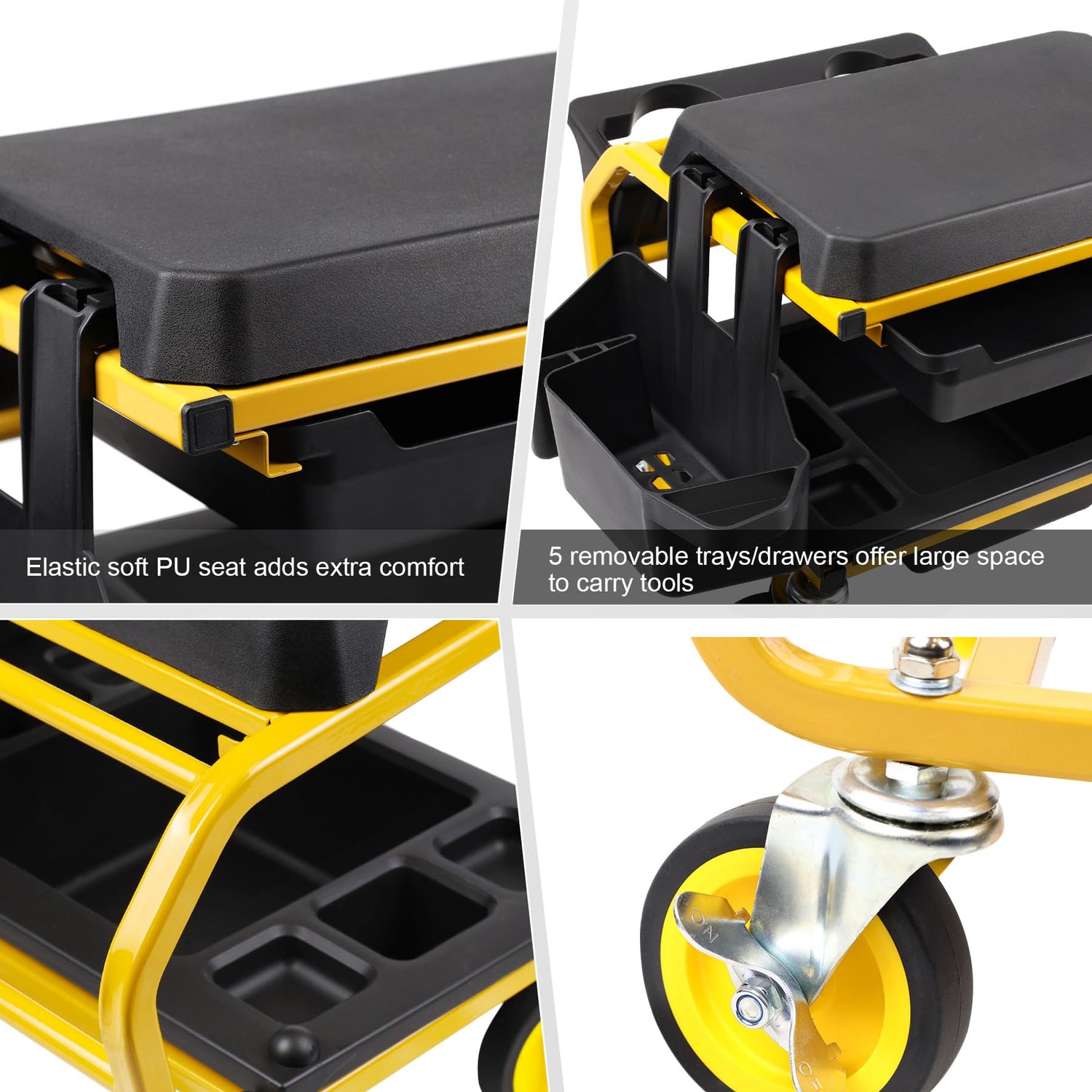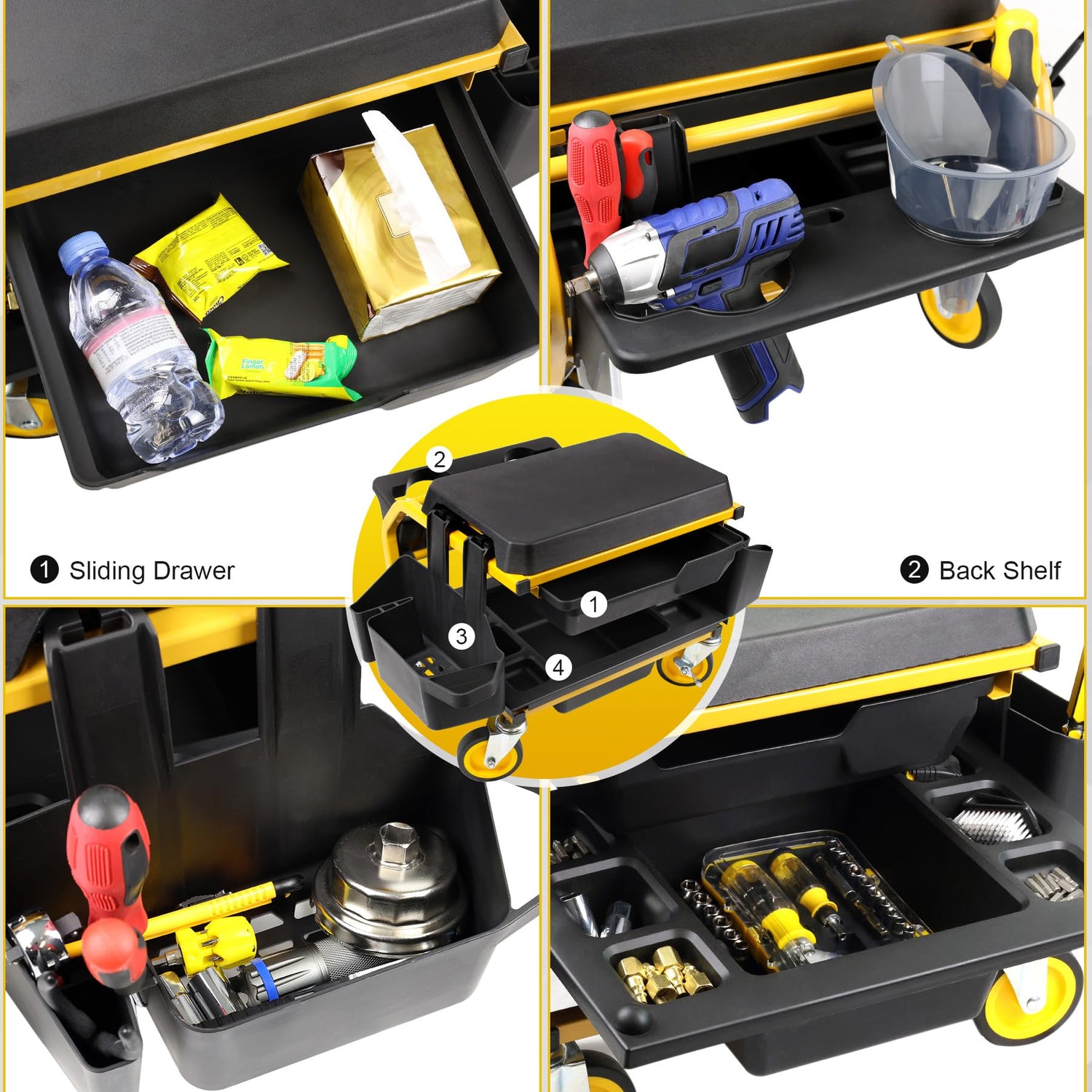 - With 5 removable storage drawers/trays to carry frequently-used tools, this mechanic rolling stool is an ideal choice for cleaning, detailing, maintenance, repair, and other common vehicle service tasks