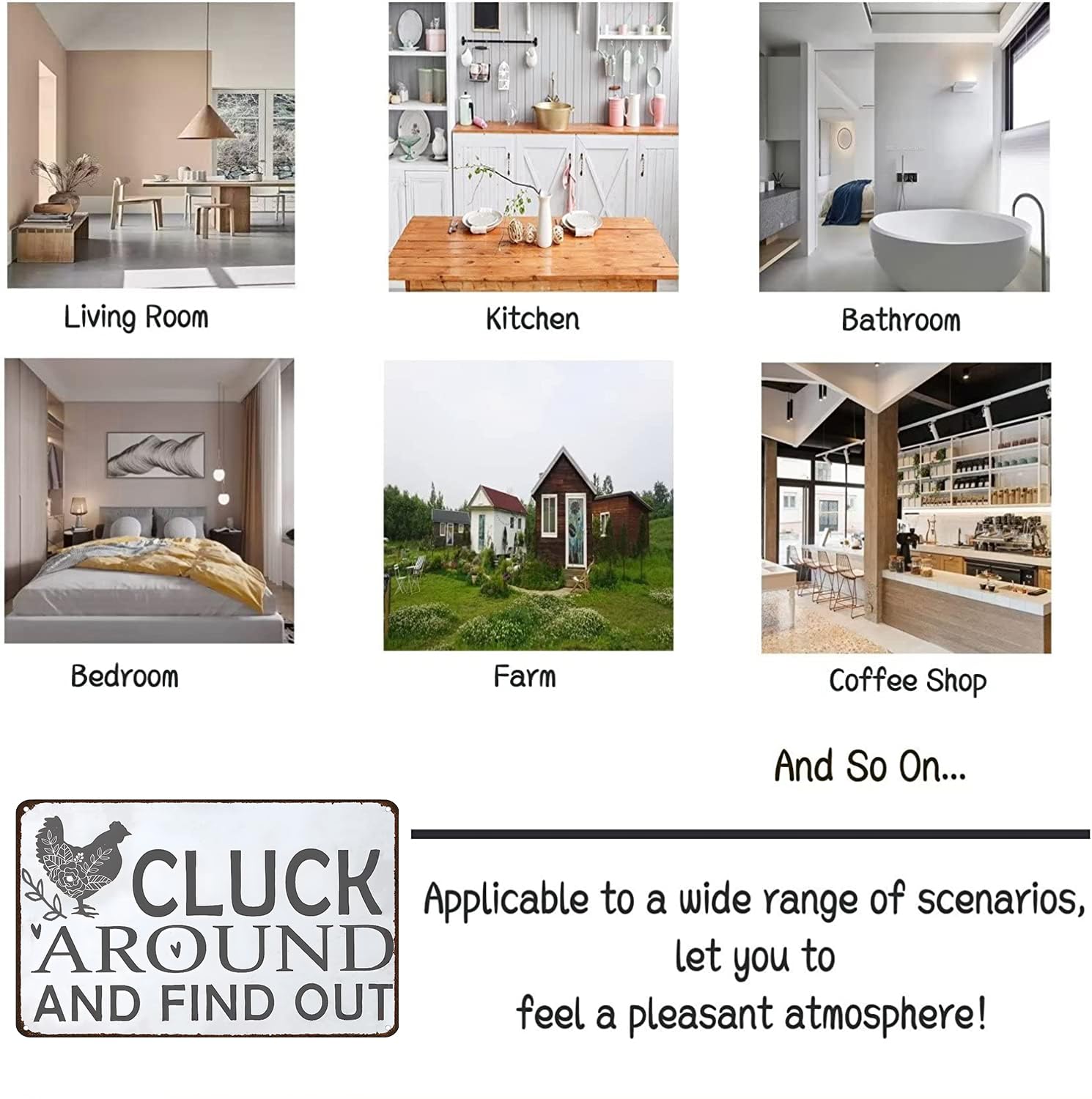 • NOVELTY SIGN: This Funny Chicken Tin Sign Is Perfect For Decorating Your Home, Farmhouse, Chicken Coop, Kicthen, Garden Or Any Other Space. It Features A Vibrant And Eye-Catching Design That Will Surely Bring A Smile To Your Face And Add A Touch Of Humor To Your Decor.