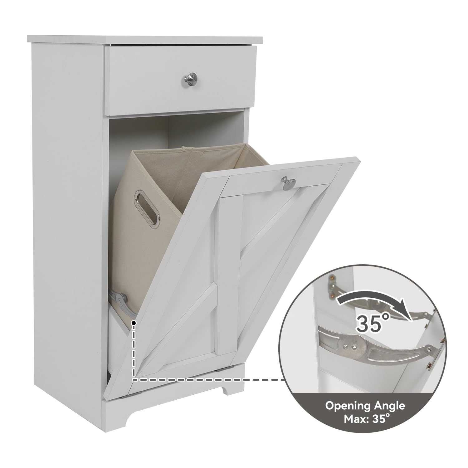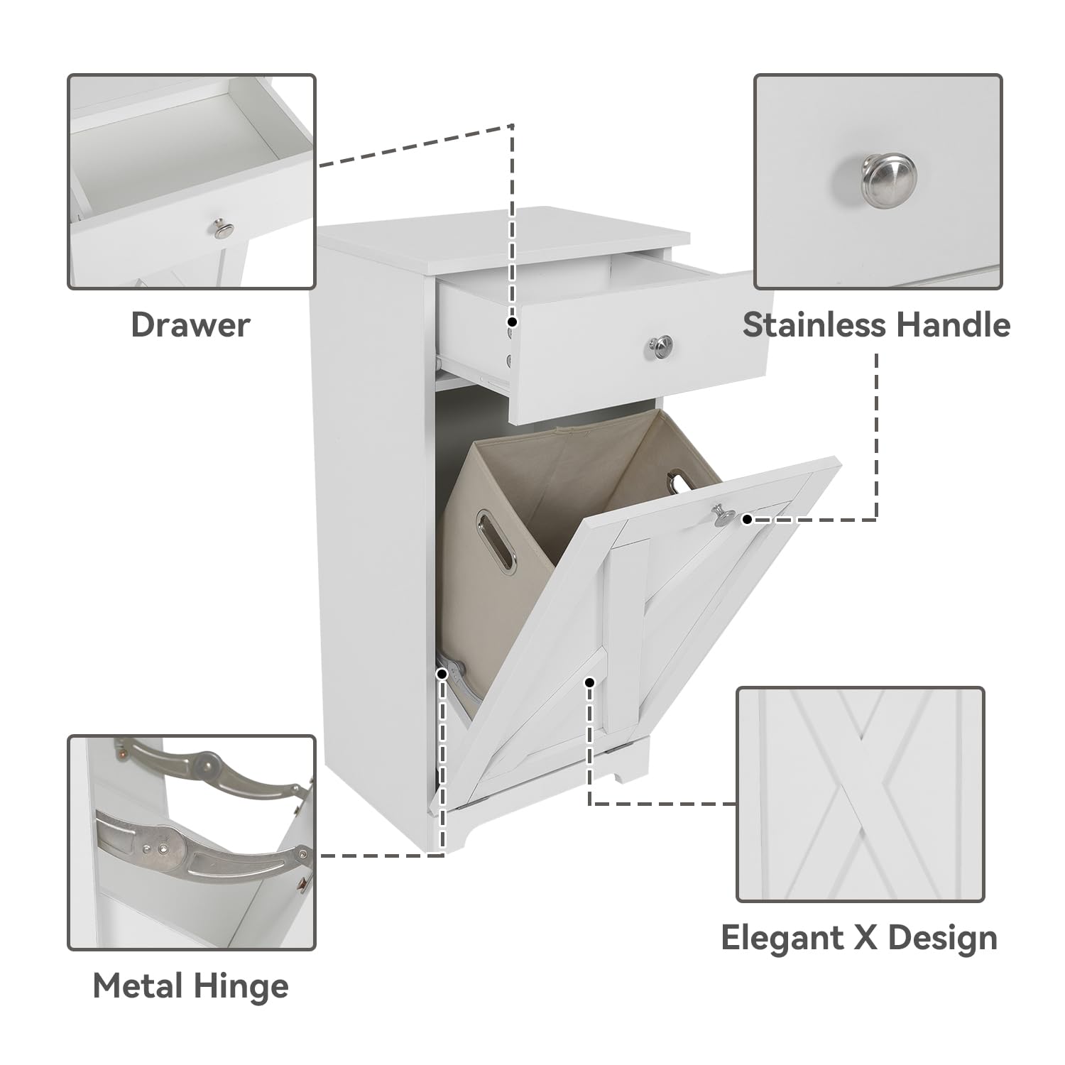 SOLIDEE Free Standing Kitchen Bathroom Tilt Out Laundry Hamper Storage Cabinet with Drawer, White