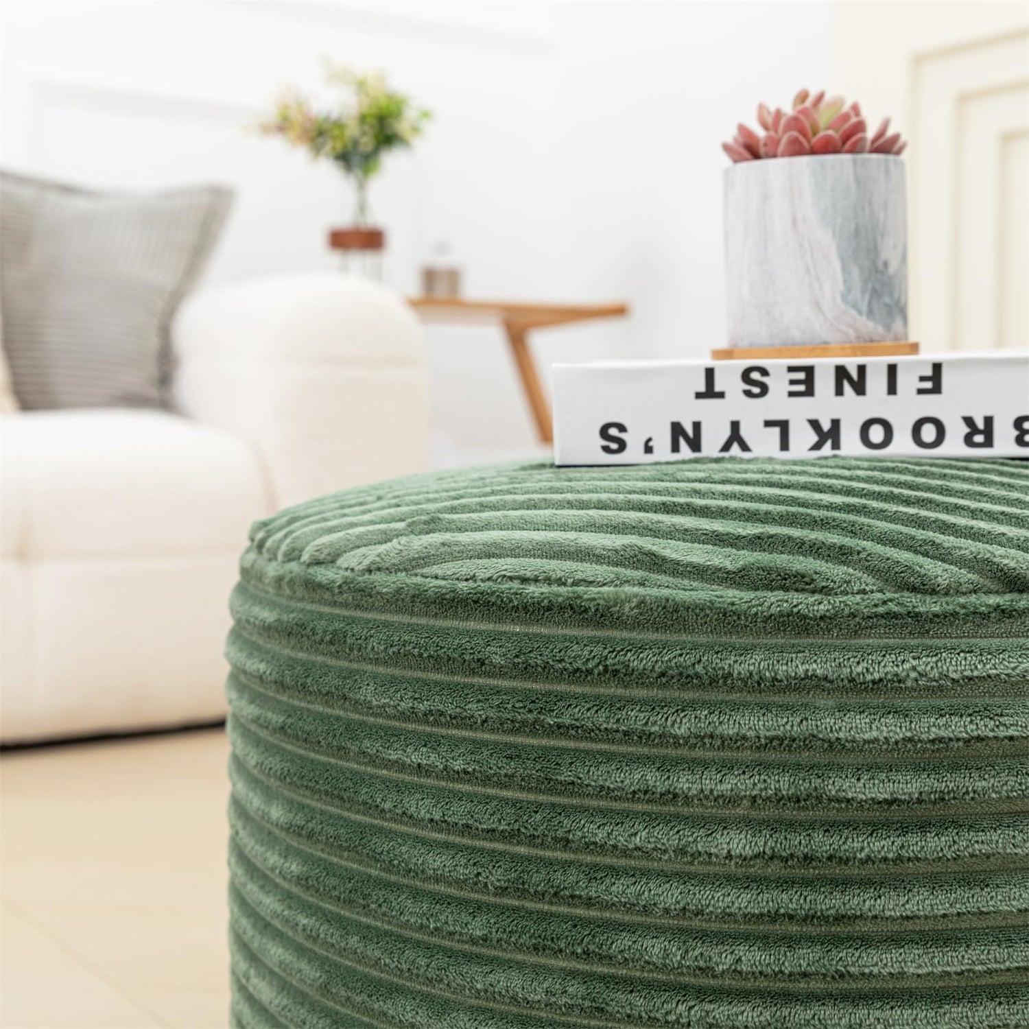 Stuffed Pouf Ottoman with High Density Foam Filler Plush Fiber Ottoman Poufs Pouf Stool Ottoman Round Foot Stool Storage Ottoman 20 x 12 Inches Floor Pouf Ottoman Foot Rest for Living Room Green