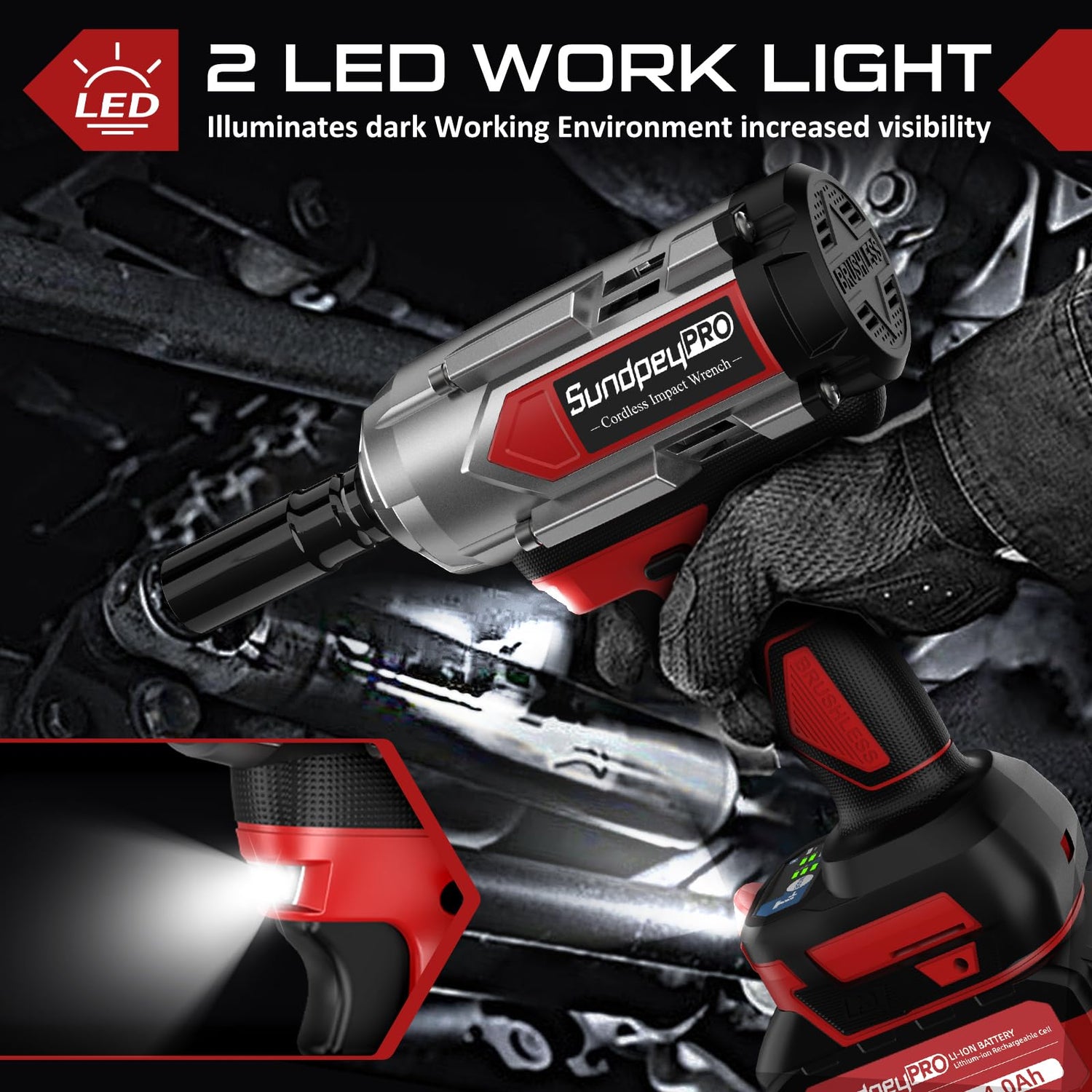 • Upgraded Brushless Motor & Protection: SundpeyPRO committed to providing good products to every user. The max torque torque of the cordless impact wrench is 1300N·m/960Ft-lbs and 2600RPM, the built-in brushless motor has low noise and stable performance, and the motor has a 50A overload protection, when overloaded, the motor chip overload protection function will be triggered, and the 1/2" impact wrench will be suspended automatically