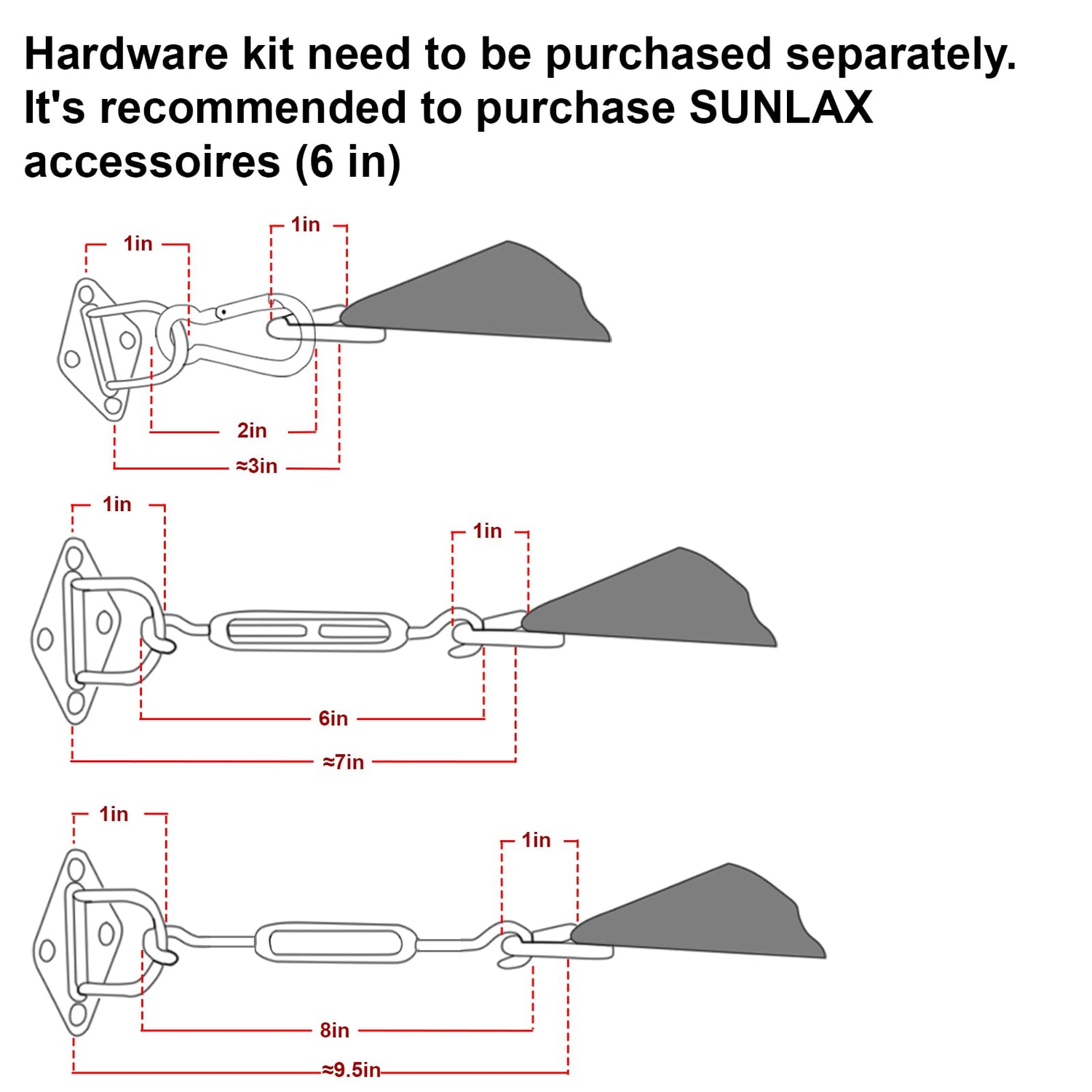 - 【About Installation】Leave 0.5-1 feet between the fixing point and the shade sails for mounting hardware/hook or rope. (Accessories must be purchased separately. It is recommended to purchase SUNLAX special sunshade accessories).