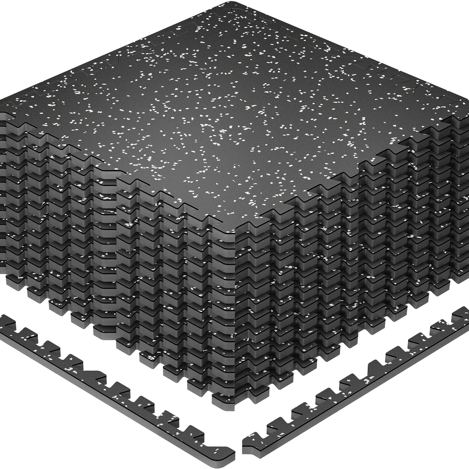 SUPERJARE 0.79'' Extra-Thick Exercise Equipment Mats, 12 Pcs 48 Sq Ft Rubber Top Floor Tiles with High Density EVA Foam, Interlocking Gym Flooring for Home Gym, Workout Mat, Black/Grey