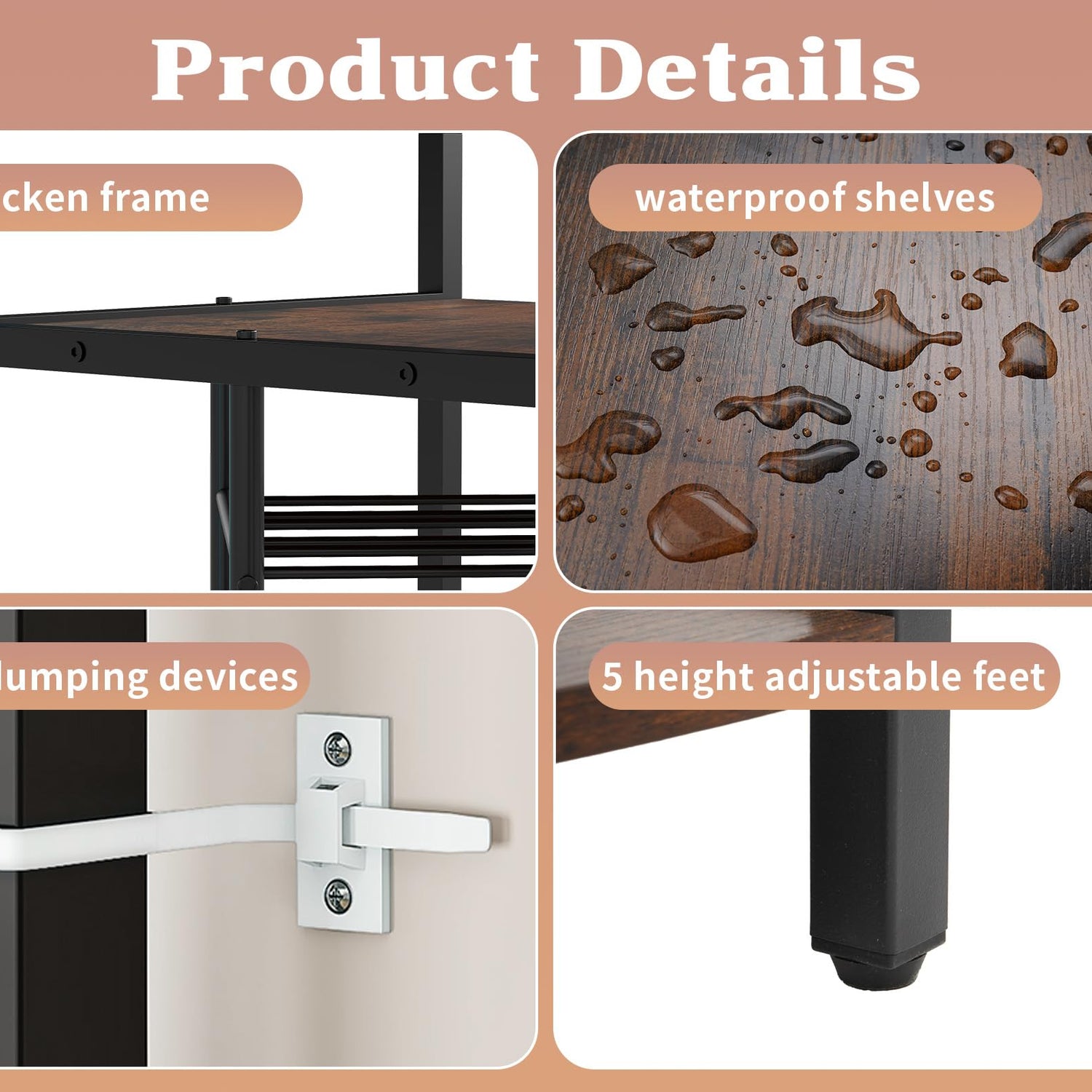 - Easy Assembly and Versatile Functionality:All hardware and easy-to-follow instructions are included, requiring no special tools for assembly. This versatile wine cabinet features open storage on top with three countertops and an increased guardrail height to prevent items from falling